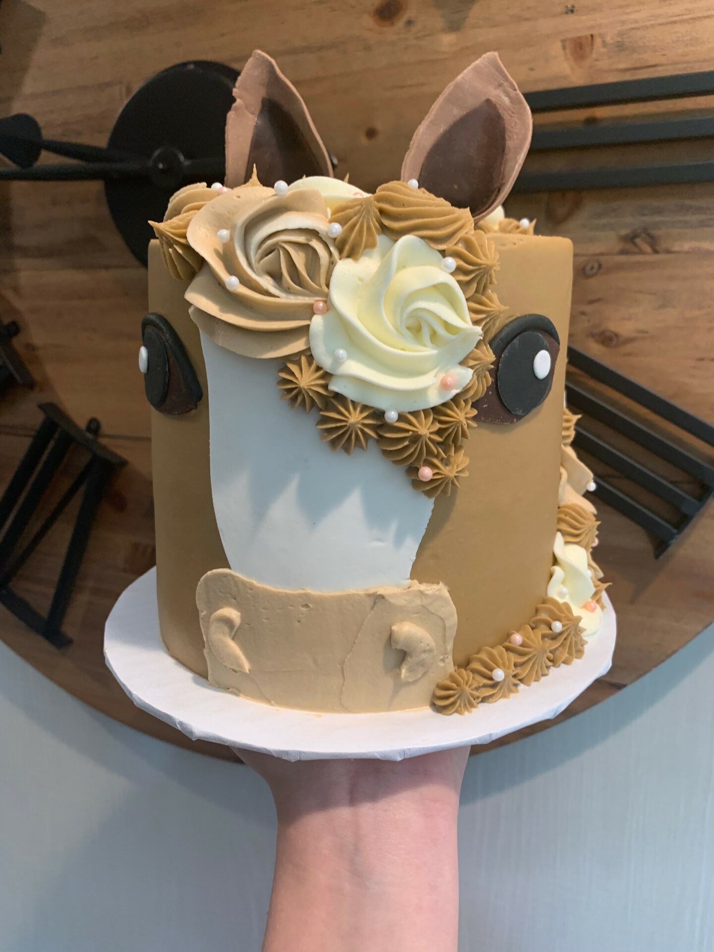 One example of this was an order I received from an equestrian. It was a horse cake, with fondant details. At first my answer was immediately no. But she was a consistent client so I gave in and finally said yes. This cake turned out beautifully, and it has been my most popular cake style this year. The same design has been ordered at least ten times already, and I have more orders for later this year. I am actually going to use this as one of my relevant work photos I send in for you!