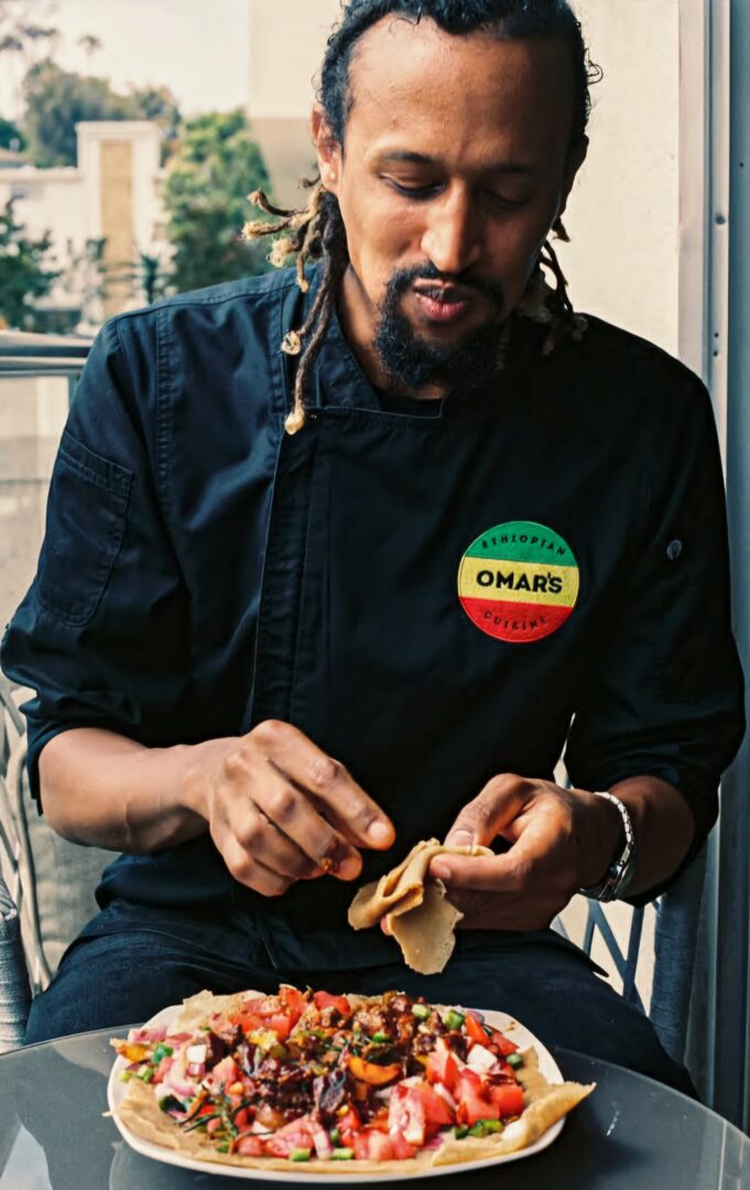 I have always been passionate about spreading my Ethiopian culture more than anything else but just didn’t know how to. Seeing that Hollywood didnt have any Ethiopian food establishments, I saw that I could be the first. It was 2020 when the pandemic started and my job ended after six years of being in sales. Not having any commitments and all the time in the world, I found this was the perfect opportunity to move forward with it. I went home to Atlanta so my mom could teach me to make the food. My parents are both immigrants from Ethiopia. She is known as one of the best cooks in the family. I never was a chef nor went to culinary school. It was more about the business and educating people about the culture I was focused on. After learning how to make the food, I hesistated to start the business because of our friend named anxiety. It wasn’t until I went to Cartagena, Colombia where I found my truth. My buddy presented the idea of going there to shoot a documentary about the food and culture. From the chefs I met during those ten weeks and all the invaluable advice I received, it gave me all the confidence to start my business . The generosity and hospitality was already ingrained in me because of my culture but the confidence was the biggest thing I had to gain to move forward with starting Omar’s Ethiopian Cuisine.
