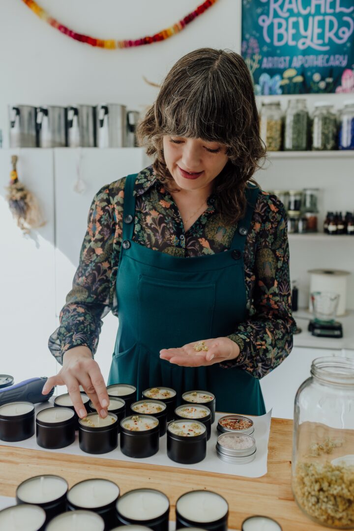 I’m Rachel Beyer, and I’m the artist, herbalist, and maker behind this collection of handcrafted goods. My journey began with a love of plants and a vision to create products that honor the earth and bring a touch of nature’s magic into daily life. From my backyard and community garden, I grow, harvest, and infuse the herbs that inspire every product, from candles and lip balms to sprays and perfumes. Each item is a labor of love, crafted in small batches with natural, eco-friendly ingredients and packaging designed to be gentle on the environment.