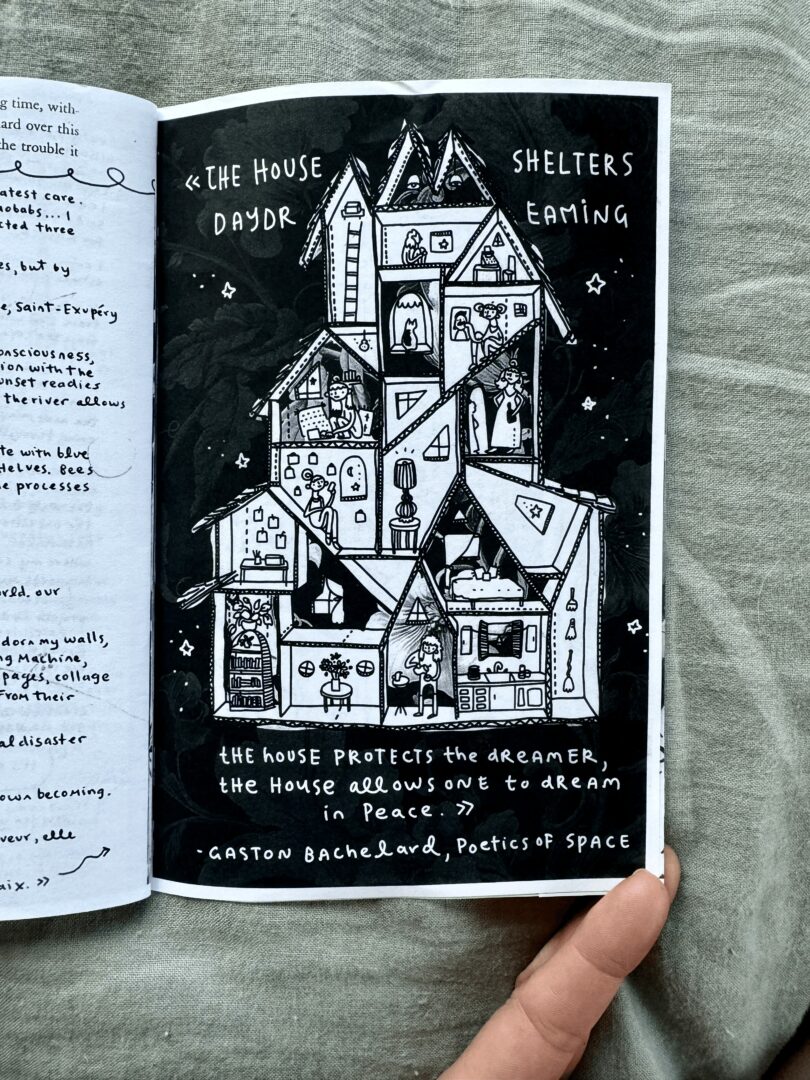 Recklessness. At the end of the day I’m just going to send it. Even if I’m embarrassed. It just has to be out, I just have to move tf on. Rick Ruben said something in “The Creative Act: A Way of Being,” “sometimes the best work is the sketch.” That might not be the real quote. *flips through book.* I can’t find it. I had this workshop I was going to host making Alsatian paper houses for Advent Calendars. I couldn’t organize sufficiently to put the workshop together so the fruition of the idea was making them with niblings. Maybe I’ll make an install for the cafe I have an ongoing residency at. Or maybe not.