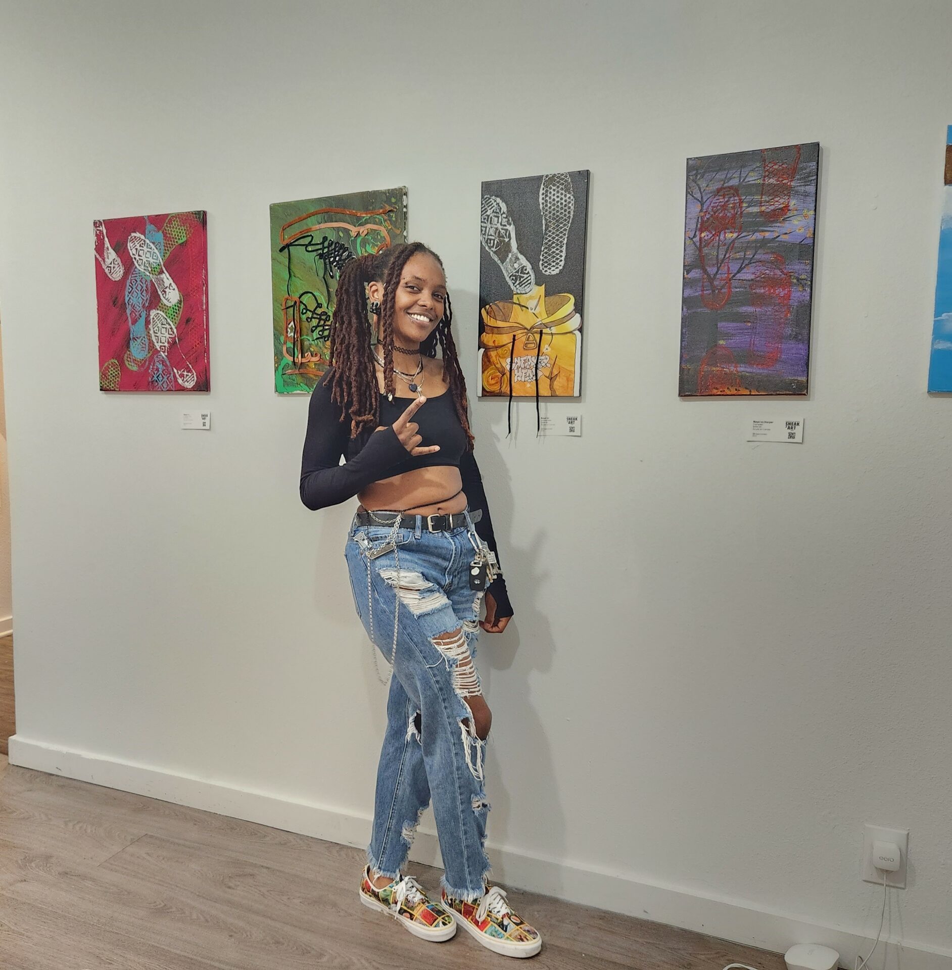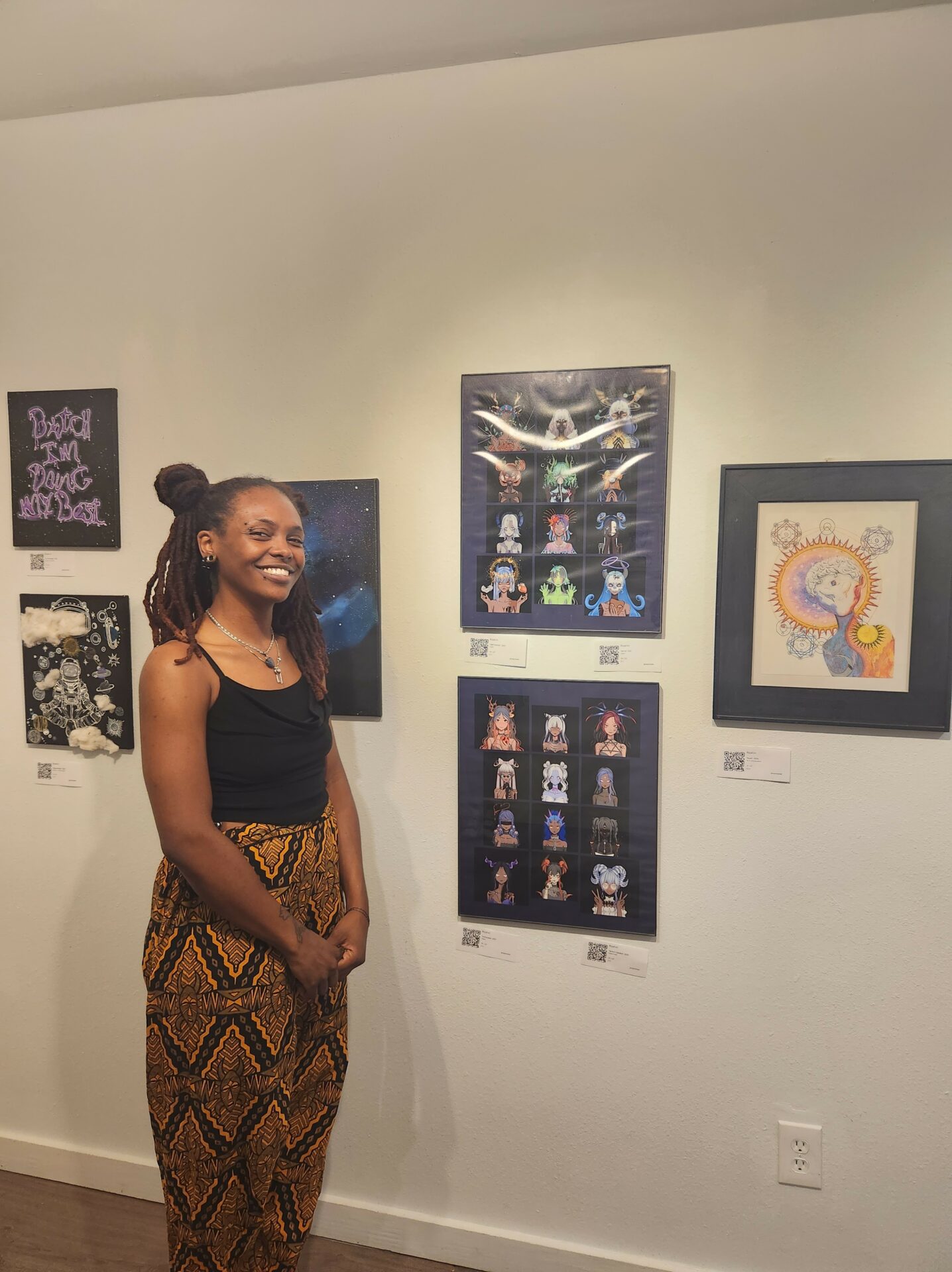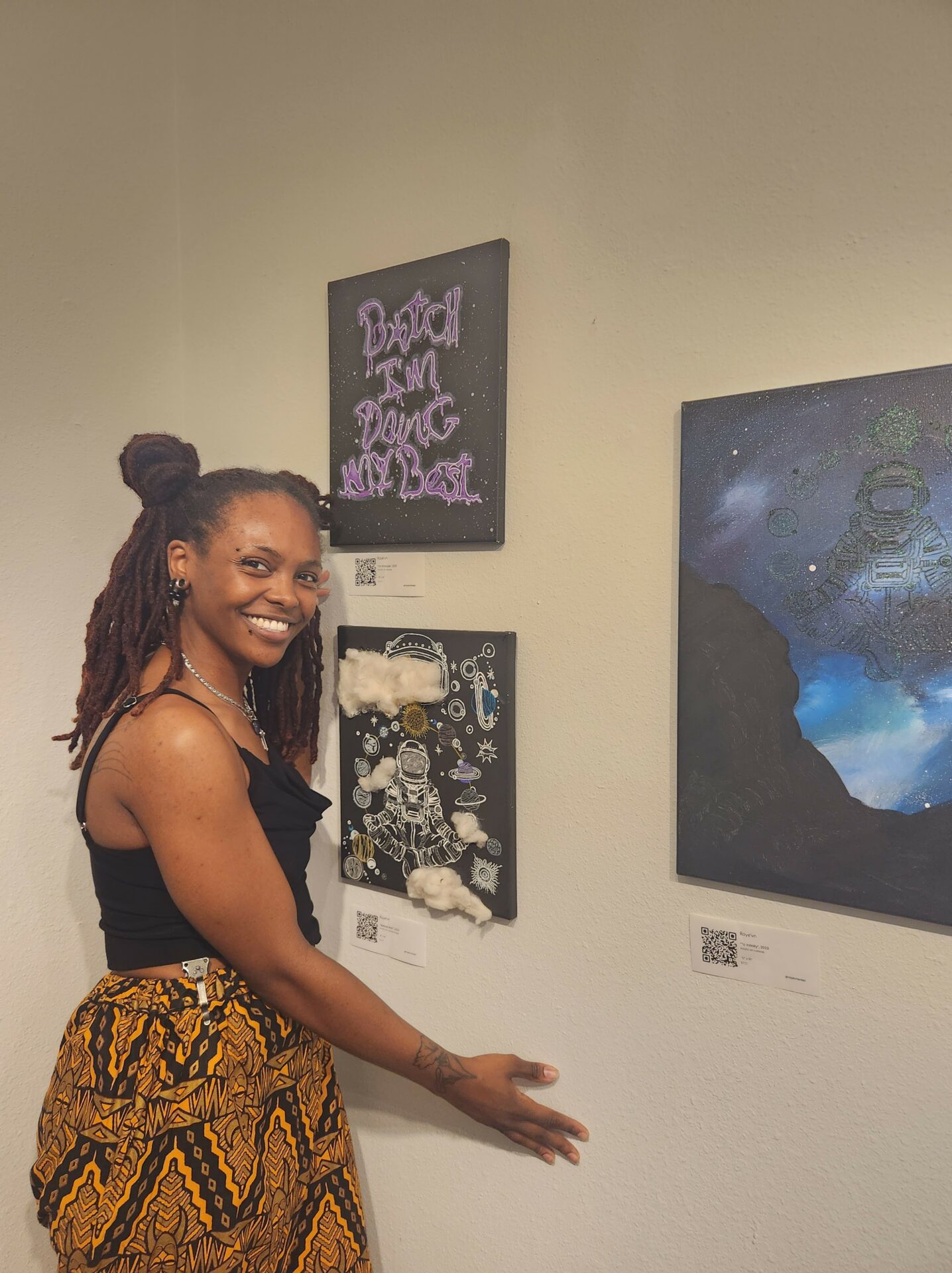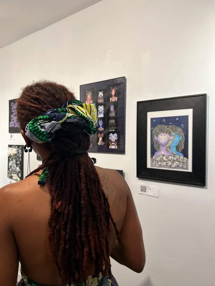 I also create multi-medium visual artwork where I mix materials like wood, canvas, fabric, graphite, ink, paint, and spray paint. I love seeing what happens when I mix unexpected materials and let my imagination run free. I enjoy sharing my creations with people and seeing how they connect with them.