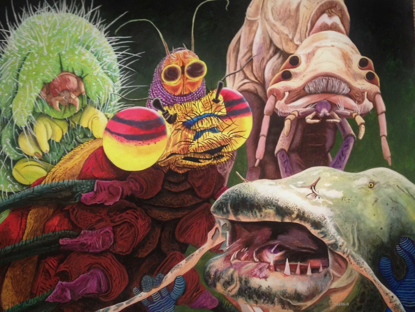 I retired in 2012. Since then, I’ve been able to make art everyday. I’m partial to surrealism and the unusual. My heroes are Bosch, Dali, Guston, Bacon and many, many more. I’ve done drawings, paintings, sculptures, instillations, comics, made music with friends, and participated in countless art exhibits. I’ve directed a couple films and self published two books starring my character ‘The Old Fat Detective’. My most recent book which just came out this month is called ‘The Elongated Skull’. My favorite part of these endeavors is being able to collaborate with my friends.