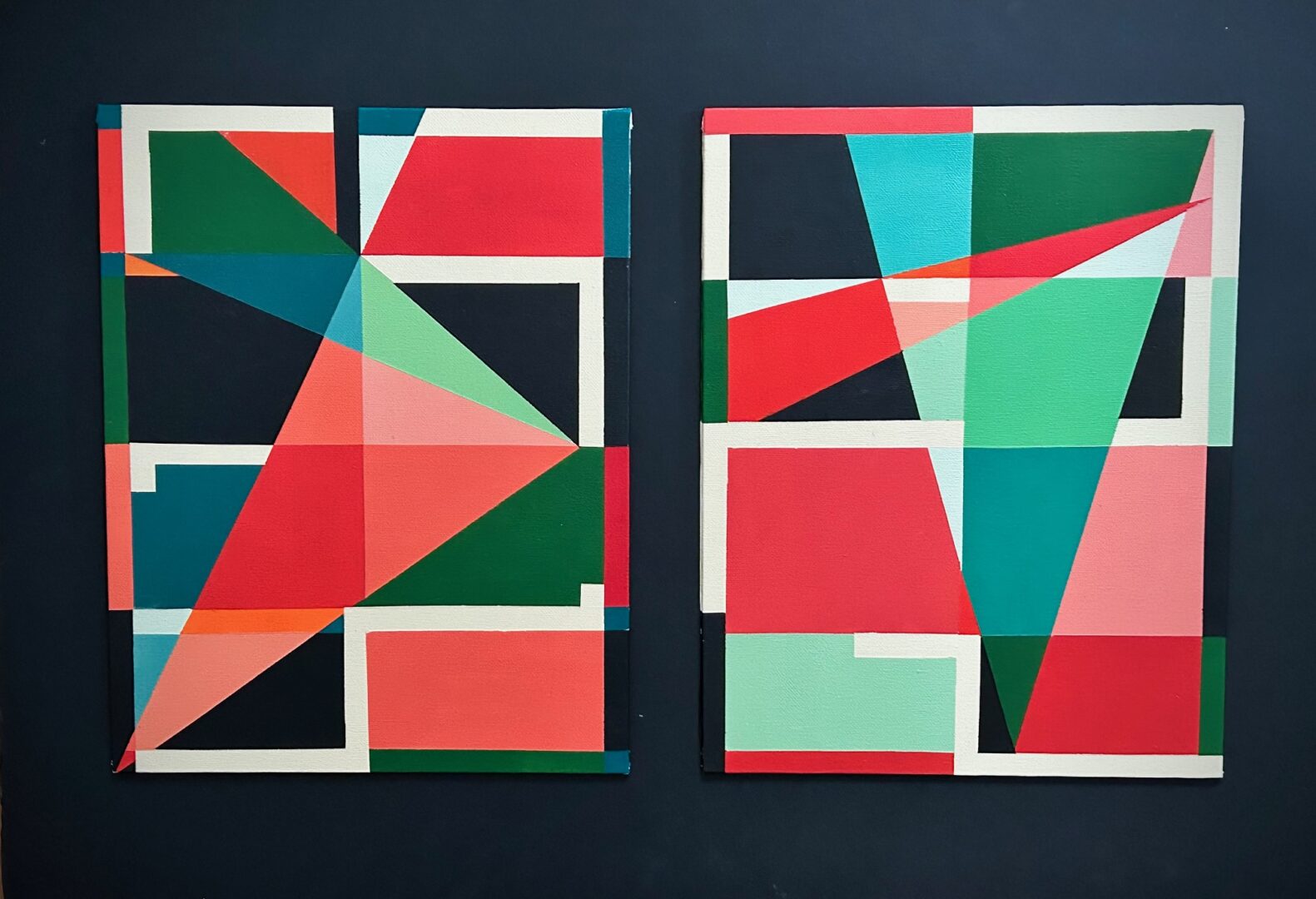 I have spent 40 year being an advertising creative director, always trying to look for creative solutions for clients in many different sizes, shapes and even countries. Being a 1960’s child, the mid-century esthetics is engrained in my soul. So, after pleasing so many clients, I decided to let my creative being out in full force and just please myself. I began a self-taught journey to learn how master the techniques of acrylic painting and bring to life my love for color, shapes, composition and rhythm, with one foot of today’s trends and another in the mid-century sleek design lines. The feeling of being creative just for yourself and getting lost in a painting is invigorating, inspiring. But I quickly found out that people also loved my work, so my new career as a painter was launched. I still approach every piece trying to create a colorful rhythmic flow but now I am also aiming to make people’s homes happy. That’s my goal: to bring a good, positive feeling to your mind when you see my painting on your wall.