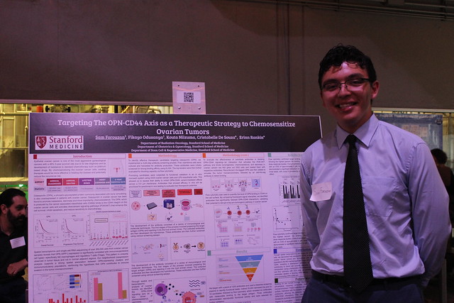 On the research side, I’m in the Rankin Lab at Stanford working on something that could change outcomes for women with ovarian cancer. We’ve developed a therapeutic antibody that targets ovarian cancer tumors, and we’re running in vivo studies right now. The stakes are real – only 31% of women diagnosed with late-stage ovarian cancer survive five years. That statistic haunts me. We hope that through this antibody, we may be able to increase that number.
