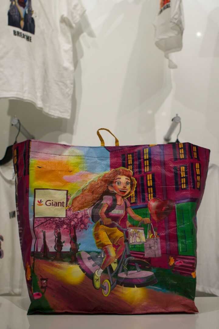 In addition to Spiral, another exciting venture has been my collaboration with Giant, a national brand, to design reusable shopping bags. This opportunity allowed me to bring my artwork into a new, practical realm, where art can serve both an aesthetic and functional purpose, making sustainability more beautiful and accessible for everyone.