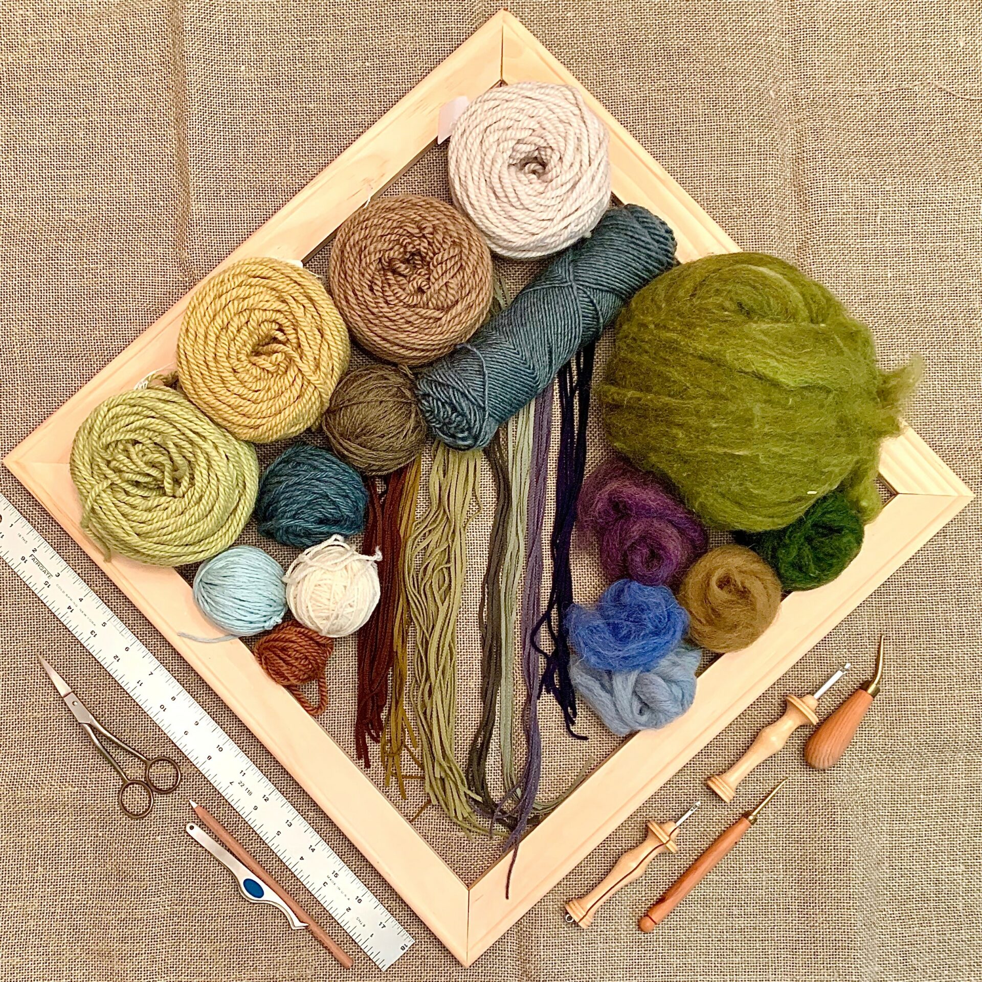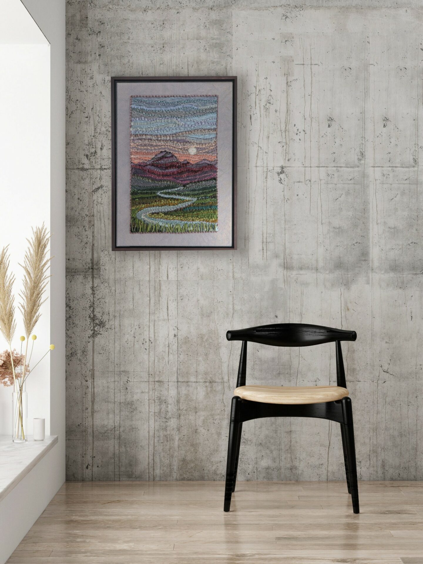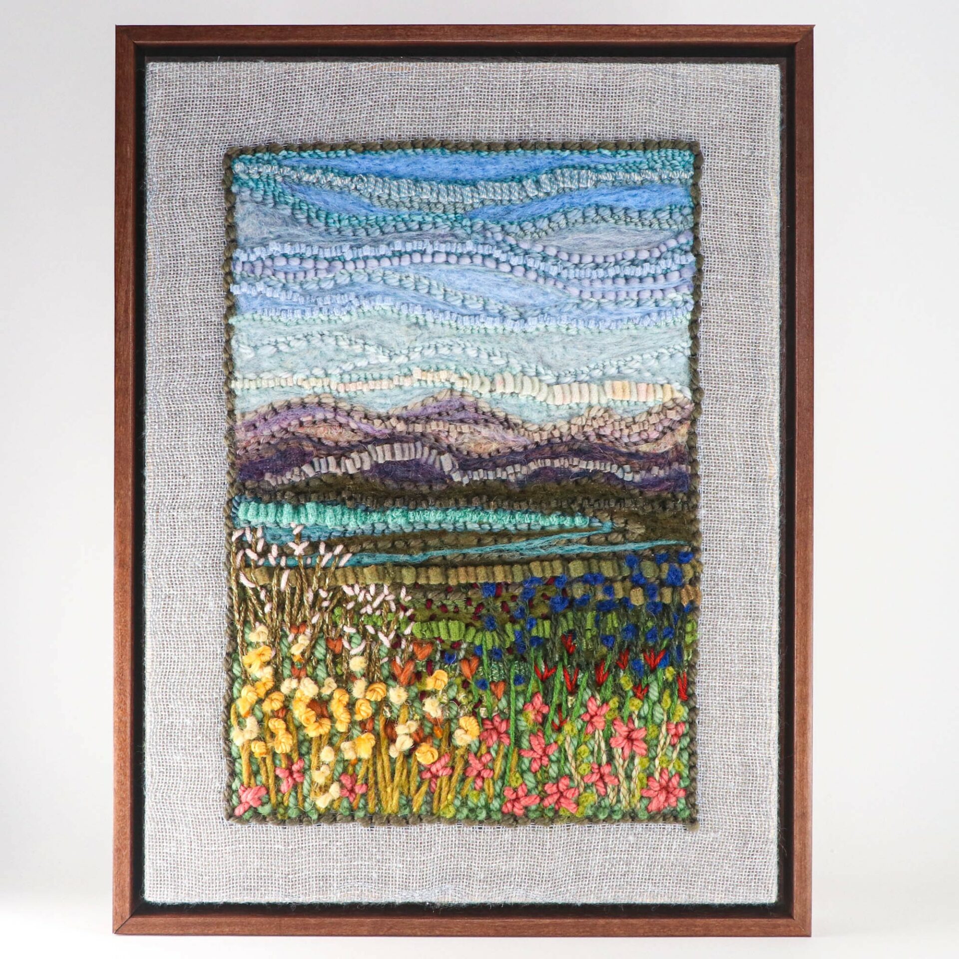 My fiber art career started out with 3D needle felting, then eventually honed in on 2D wool landscapes featuring scenes from the Southeast. In recent years, I’ve learned rug hooking, punch needle, and tufting, all of which have given me new ways to work, achieving different textures through each medium, and the opportunity to break all the rules by combining them.
