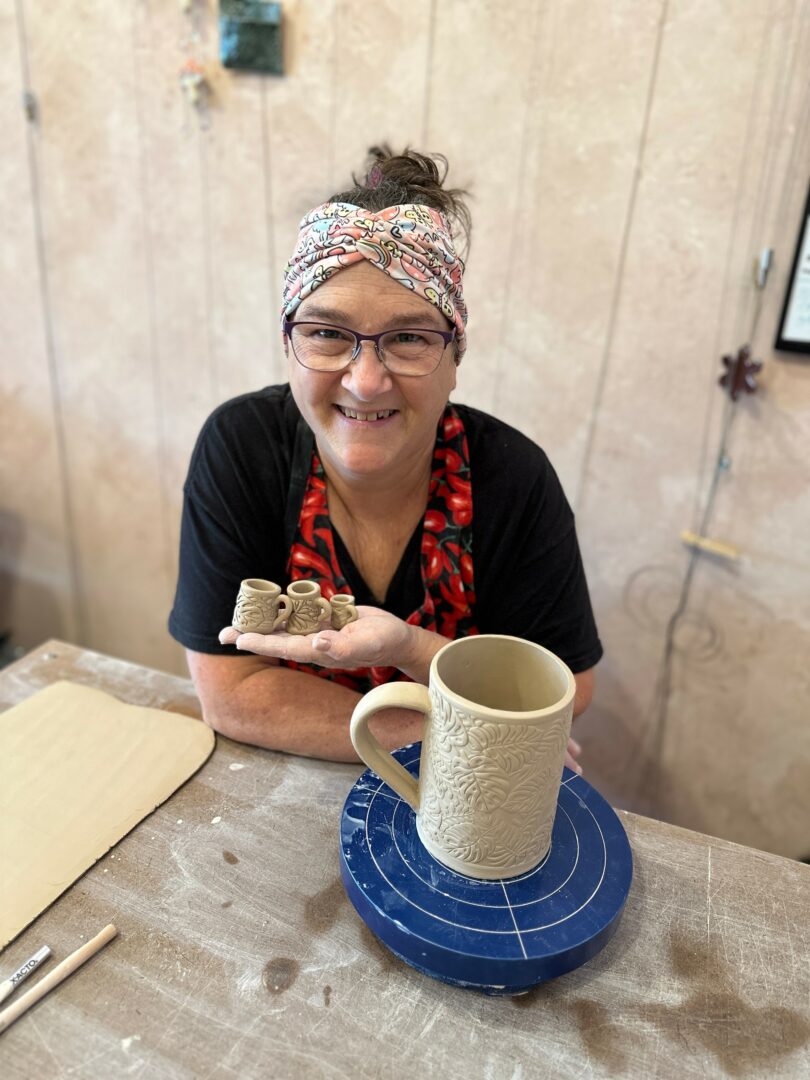 Having patience, not being afraid of taking risks, as well as willingness and a desire to learn all play a role in my journey. I am typically not a patient person and usually rush through projects, but pottery doesn’t allow for that. Clay needs time to dry out before they can be fired or it will explode, then you have to glaze it, followed by a second time in the kiln. A simple mug can take two weeks to make from start to finish and that’s if everything goes smoothly.