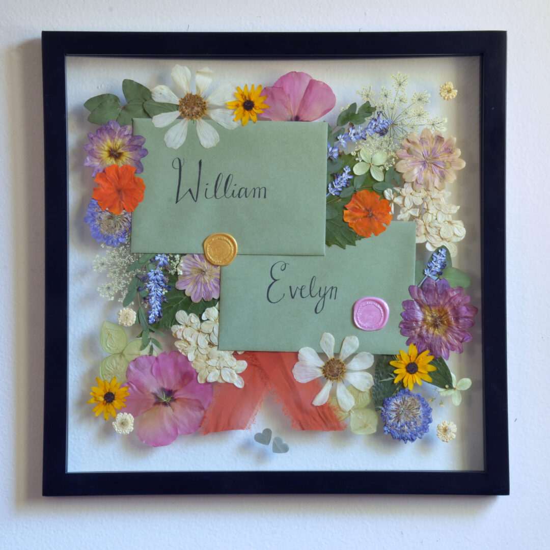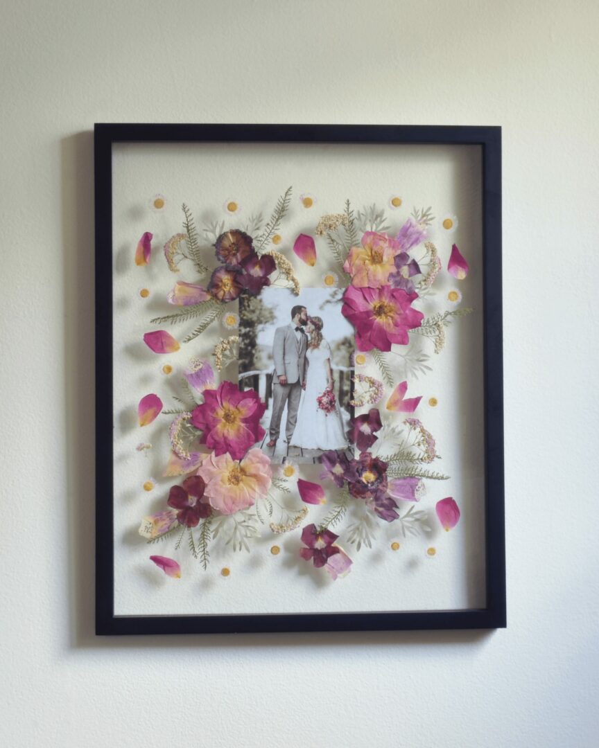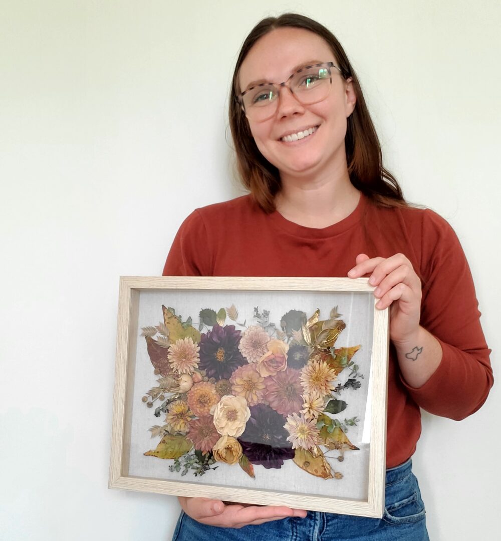 At The Rambling Florist, I specialize in preserving precious floral moments. My most popular service is wedding bouquet preservation – taking stunning wedding day flowers and crafting them into custom-framed artwork that becomes a cherished heirloom. But I also go beyond weddings. I preserve flowers from baby showers, anniversaries, birthdays, memorials – really any occasion where flowers play a significant role. I also create original botanical art pieces and prints using flowers I grow myself, bringing a truly unique, garden-to-glass touch to my work.