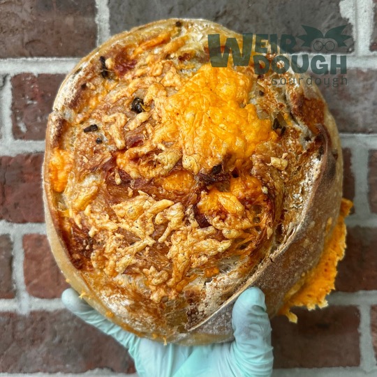 Weirdough Sourdough is all about embracing what makes you, you. As a mom, it is my mission to teach my kids to value themselves and to develop resilience. My motto, “Stay weird”, may seem simple, but at its core it is a high five to each of our customers reminding them that what makes them unique is what makes them extraordinary. At Weirdough, these principles are reflected in the menu. Rather than just your run-of-the-mill baked goods, you will have the opportunity to try unusual flavors like our Fried Green Tomato Sandwich Bread, Garlicky Dill Pickle Focaccia, Activated Charcoal Bagels, and more. Each item is handmade, baked fresh, and incorporates high quality ingredients that nourish the body. While I love baking artisan breads, what I love most about my business is being engaged with my community through local markets and events. To all of my customers, thank you, and please know that getting to know you is the best part of it all.