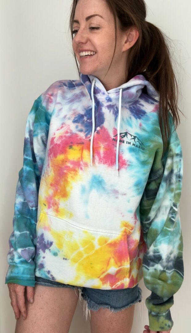 We are often working late nights in the workshop. That’s where we tie dye and screen print clothing for our brand. Many local companies contact us to make merch for them, too!
