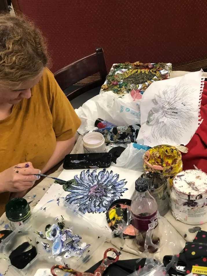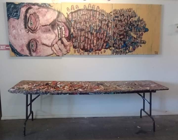I love to paint. It literally consumes my life. I have two days off in the week and I spend them going to art studios to do open studio painting. It’s the shining part of my week. I work a normal dishwashing job to pay the bills, but I always look forward to creating. I get a dopamine rush expressing myself. I am lucky to have found this purpose. I love painting people the most. My style comes from caricature and distortion. My art is not the most marketable as it is more personal. I paint about my religion and mental health.