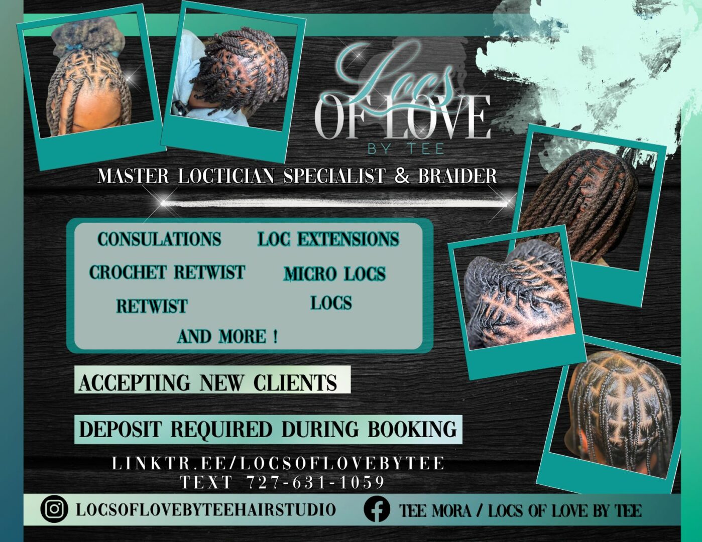 - Instagram: https://www.instagram.com/locsoflovebyteehairstudio?igsh=MWMzdHRkYXF0a3k4Zg%3D%3D&utm_source=qr