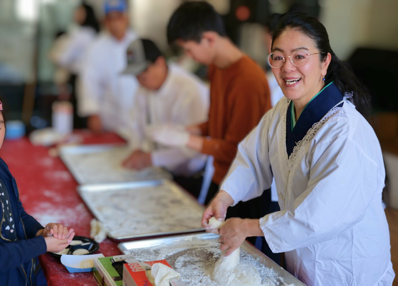 The photo shows a Christmas dinner event at the church, where I made hambagu (Japanese-style hamburger steak), a popular home-cooked dish in Japan. My version incorporates plenty of vegetables, making it perfect for children who might not like vegetables otherwise. I also participated in a New Year’s mochi-pounding event with the local community, sharing Japanese culture. While many Americans associate mochi with sweet desserts like ice cream wrapped in mochi, in Japan, it’s a special dish eaten during celebrations like New Year’s. I helped children shape freshly pounded mochi and wore a traditional kimono for the event, which was a delightful experience. Through food, I’m gradually building connections within the community and look forward to continuing to share Japanese home cooking and healthy food culture here in the U.S.