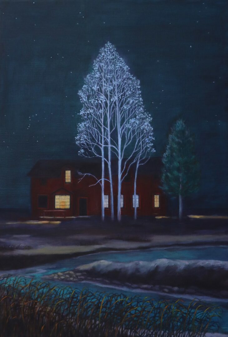 To have time in the studio is like being able to breathe fresh air after being confined in a small cramped room without windows. The last three years I have been able to focus more clearly on my work which has shifted. I am still a narrative painter although the children have slowly disappeared from the paintings. My focus remains on the environment but it is increasingly turning towards the intangible, what lies beyond the known. We know so little and yet act as if we know everything.