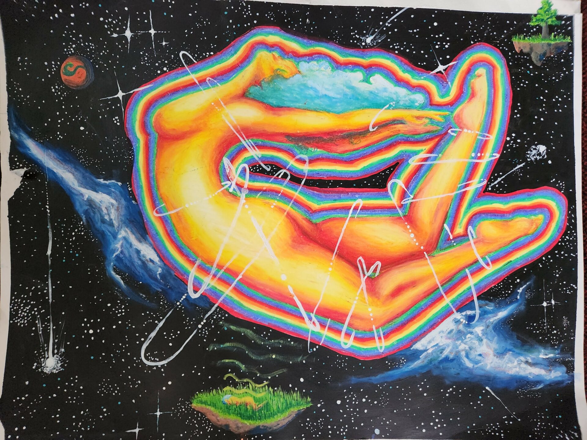My work is dreamy, escapist and surreal. From costuming to drawing, it’ll always have those things in common. I love the female form and nature, so those things are recurring themes for me as well. And I’m absolutely obsessed with capturing the vast endlessness of space.
