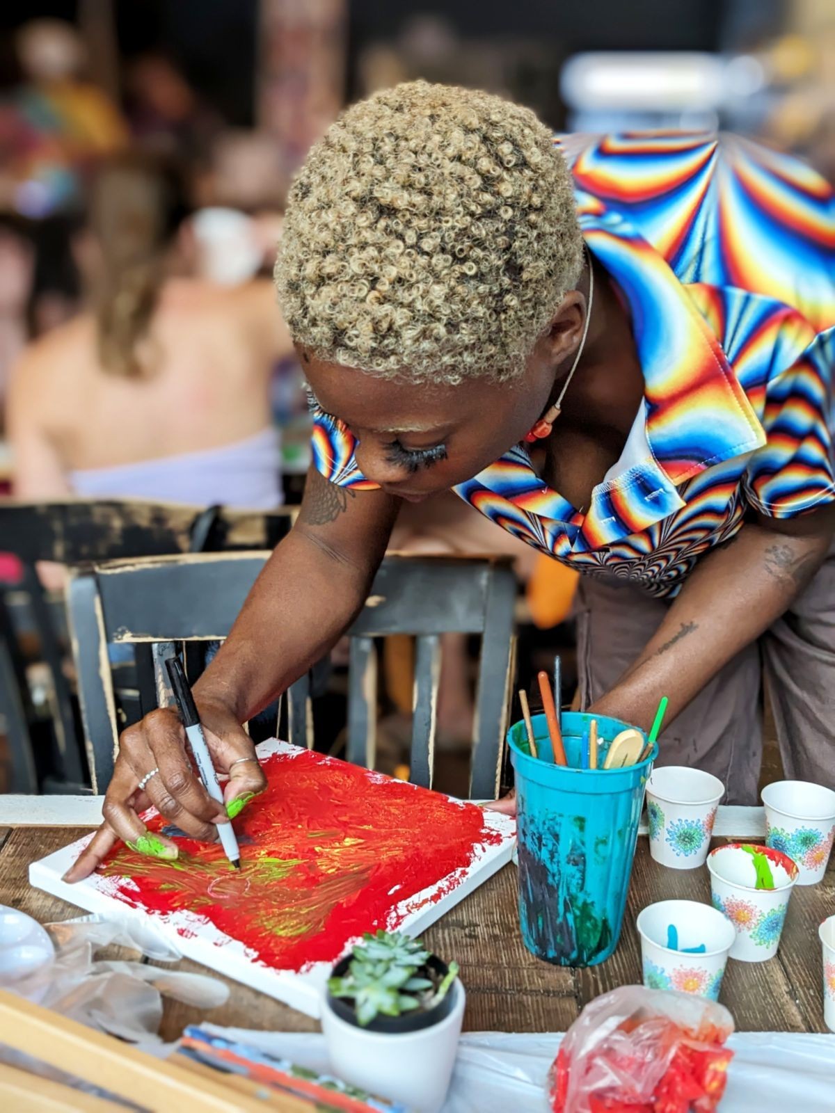 I’ve recently starting leading creative hours, something I’m super excited about that has been in the works for some time. Id like to start offering those at different places, bars and community centers, etc. I would love to become a full time paint night host for people’s events and parties, it’s been on my list for a while. I’m available to be booked through my website or email. I help even non artists to feel like Van Gogh and Picasso. or so I hope lol.
