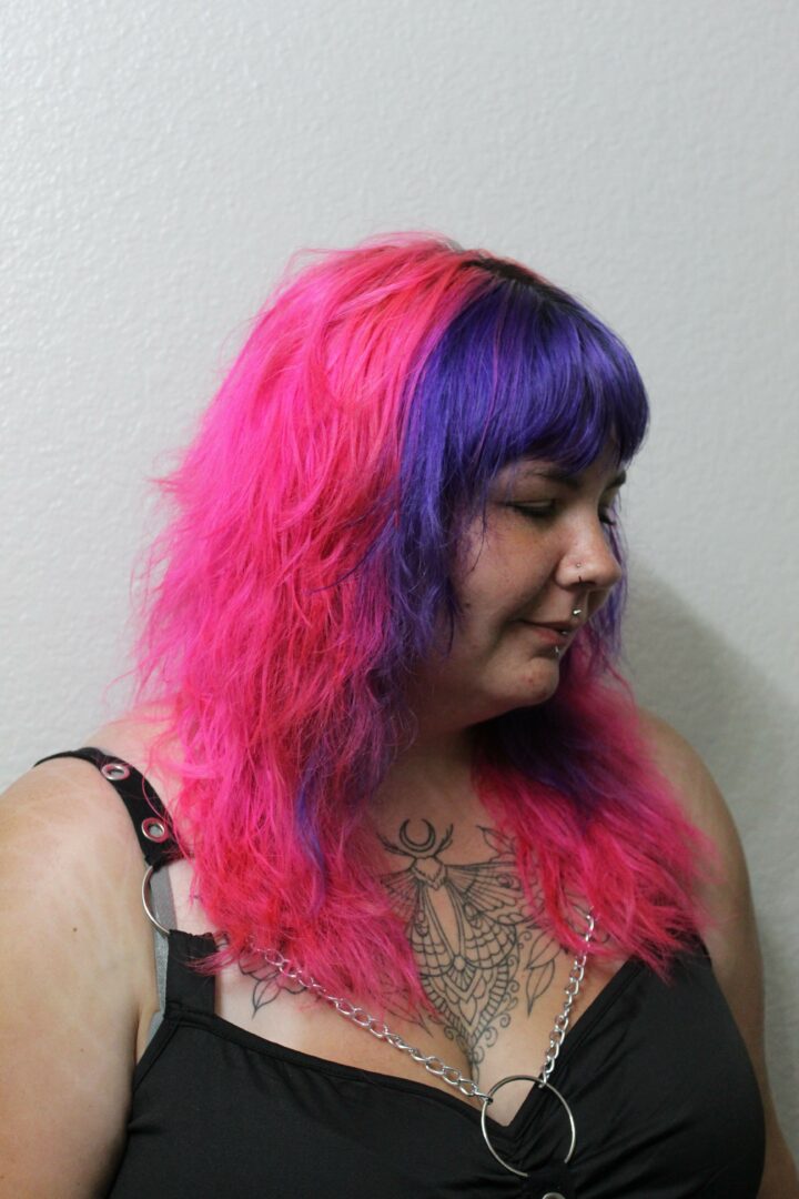 I’m the owner of Indie Haven Studio: inclusivity, transparency and sustainability are at the core of our beliefs as a business. I specialize in gender-neutral cuts, razor cuts, vivids and color corrections. This truly sets us apart, as we’re one of MAYBE three LGBTQIA+ and holistic salons in our conservative little city.