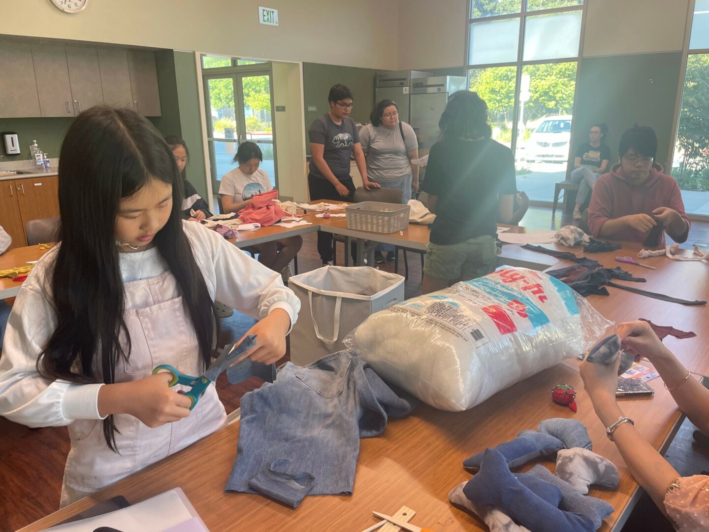 In May, when we donated the first 50 upcycled dog toys to the Schwartz Family Animal Welfare Foundation, the staff were extremely kind and grateful. Hearing from the foundation’s owner that the dogs were happily enjoying the toys was heartwarming and inspired me to work harder to create more toys. In June, we hosted our first public toymaking event at the Educational Park Library. We made 66 toys that day—so much more than Olivia and I had been able to make on our own. That’s when I realized Pupcycled wasn’t just our project anymore; it was a community effort.