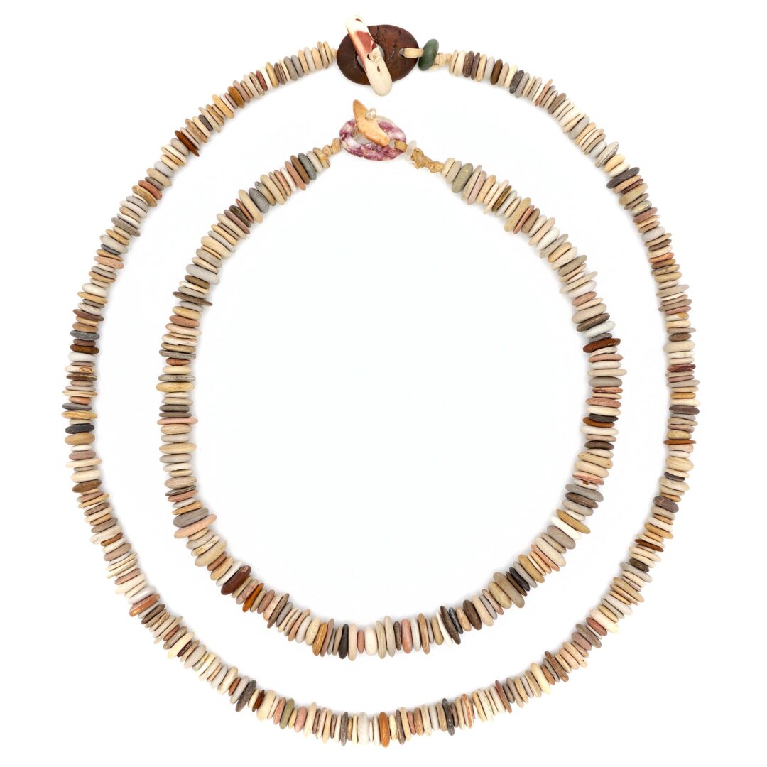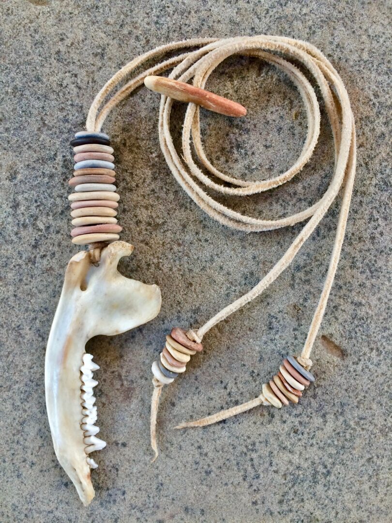 For the past Decade or so I, along with my wife, have been making jewelry and other art from things we make and find. We use mainly shells, stones, bones, seeds and other natural materials that we come across. I also have been brain tanning deer hides for quite some time so that is the literal thread that weaves our jewelry and other pieces together. It’s truly unique. We’ve been told so many times by people that they’ve never seen anything like it. I always reply that it seems they missed about ninety-nine percent of human history. It’s what people have done all over the world for thousands of years. We are innately treasure hunters. We go out, pick up beautiful things, bring them home and string them up and wear them. That’s all we do. People are very drawn to it, it’s just a universal thing being drawn to natural beauty. It’s cool because we let nature and the Earth do most of the work. We just look around and find things and drill holes in them. It’s amazing the beauty that lies beneath our feet everywhere we go. There’s jewels everywhere!! And other things, money, tools, arrowheads, the list goes on. Every time I just take a walk, even along roads and in cities, I come home with some kind of treasure. I like looking at life as a treasure hunt. It’s fun that way. And man you find some valuable shit!