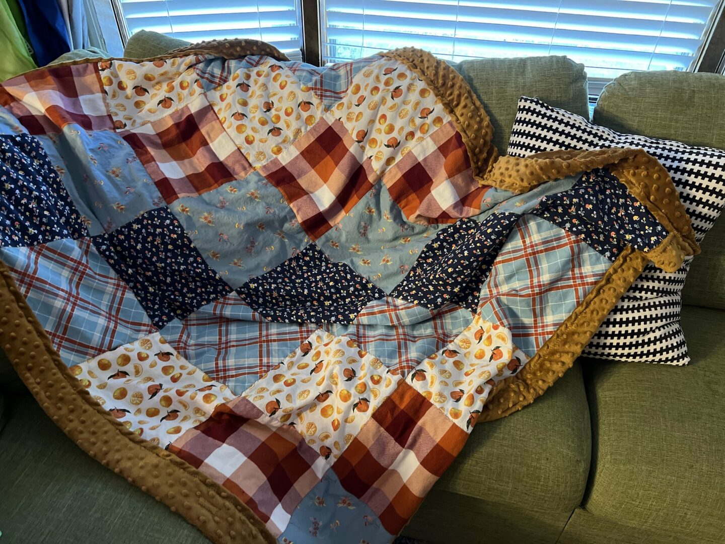 Learning to trust your talent is such an art, and such a gift when you find it. I remember double and triple guessing every decision I made for many years when I started making blankets for other people. I’d pick the “safe” option for a fabric instead of the one that I knew would make it pop for fear that others would think I was crazy. I’d do the neutral thread instead of the bright pop of color because I thought that would sell better, or it would hide any mistakes I might make. I’ve learned that the moments I take the bold choice, that I choose the one that feels right but might seem different than what others would do, that those are the moments that I am the proudest, and to be honest, the moments that people love my ideas the most. I know some people are born way more confident in this way, but for those who fall into the category of people pleasing that I have found myself in: Be bold! Try the thing! It’s ok!