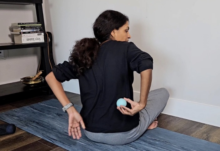 My online course, “Pain-relief Self-Massage,” offers five modules, broken into easy 15-minute non-invasive practices using everyday tools like tennis balls to relieve common chronic conditions—such as sciatica, migraines, frozen shoulders, knee & hip issues, SI joint dysfunction and more. This course offers easy solutions without having to spend a lot of money (we use tennis balls, belts, pillows, etc) or time, and the comfort of doing it at home, at your own pace, with me guiding you through every step. These techniques have been a game-changer to me and my clients, and I was determined to make it accessible to others.