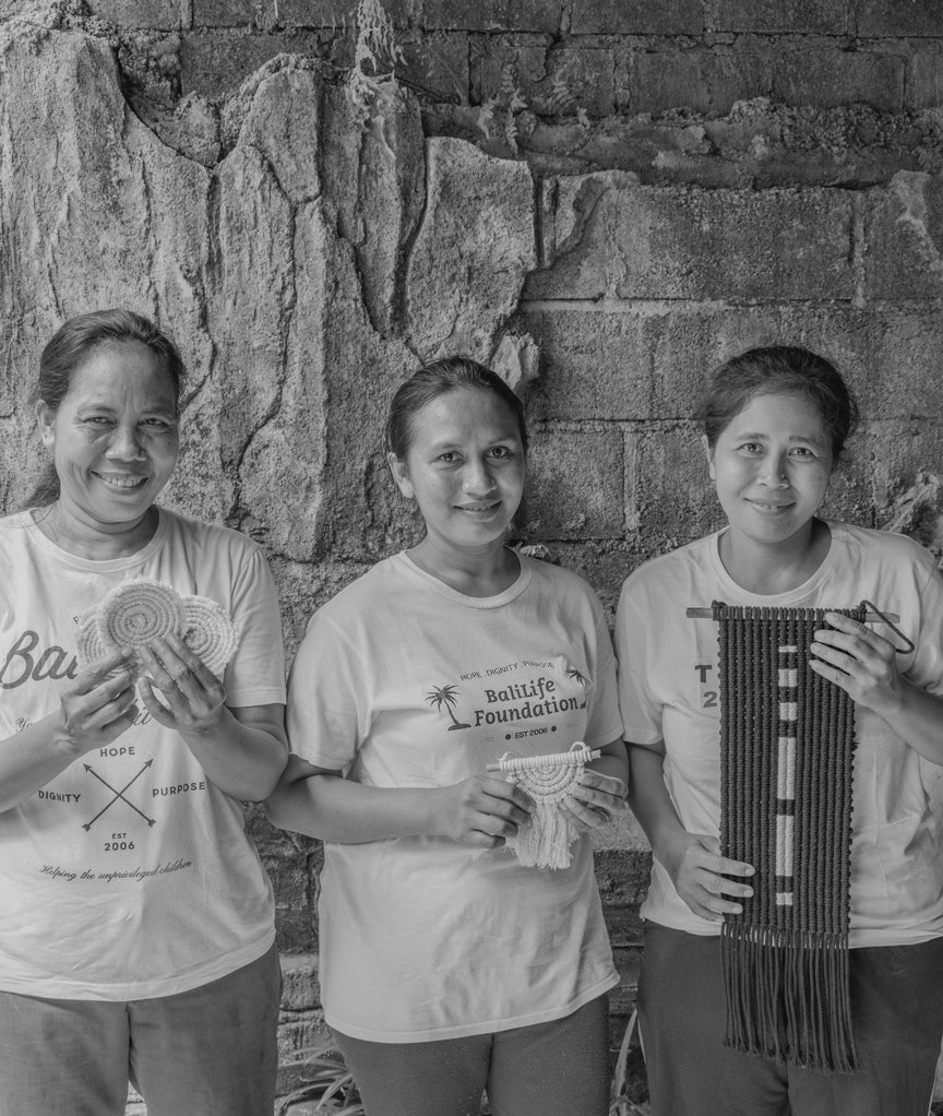 Building and nurturing meaningful partnerships is central to our mission. We collaborate with organizations like the Women’s Workshop, an initiative by the Bali Life Foundation that provides skills training for single mothers and free schooling for their children. This program aims to keep families off the streets and offers opportunities for a brighter future. Our macramé goods are crafted by these talented women, and each purchase directly supports their journey toward self-sufficiency and community growth.