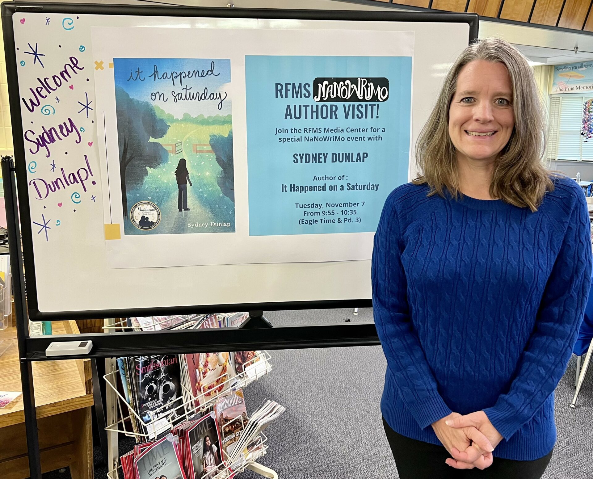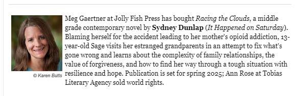 I write books targeted for readers ages 10-14 that tackle tough topics with hope and heart. When I was growing up, I loved stories that were about real things in the world that might not always be easy, but were important, so I like writing books about timely, relevant topics that feature resilient protagonists. Reading about other people overcoming challenges has helped me find my own resilience, so it is my hope that my stories will do the same. My favorite part of being an author is getting to meet and connect with readers. It’s so much fun to chat with kids (and also adults) who have read my books and talk about my characters as if they are real people. During the year since the release of my debut novel, IT HAPPENED ON SATURDAY in February 2023, I’ve had the opportunity to travel to various parts of the country and participate in school visits, library and bookstore events, and book festivals. A very exciting part of all this was when my book was chosen as the 1book 1community selection in Loudoun County, VA last fall and the library system bought 5,000 copies to distribute throughout the community and brought me in to speak about it. I’m looking forward to a lot more author events this spring and to the release of my next book, RACING THE CLOUDS, in February 2025.