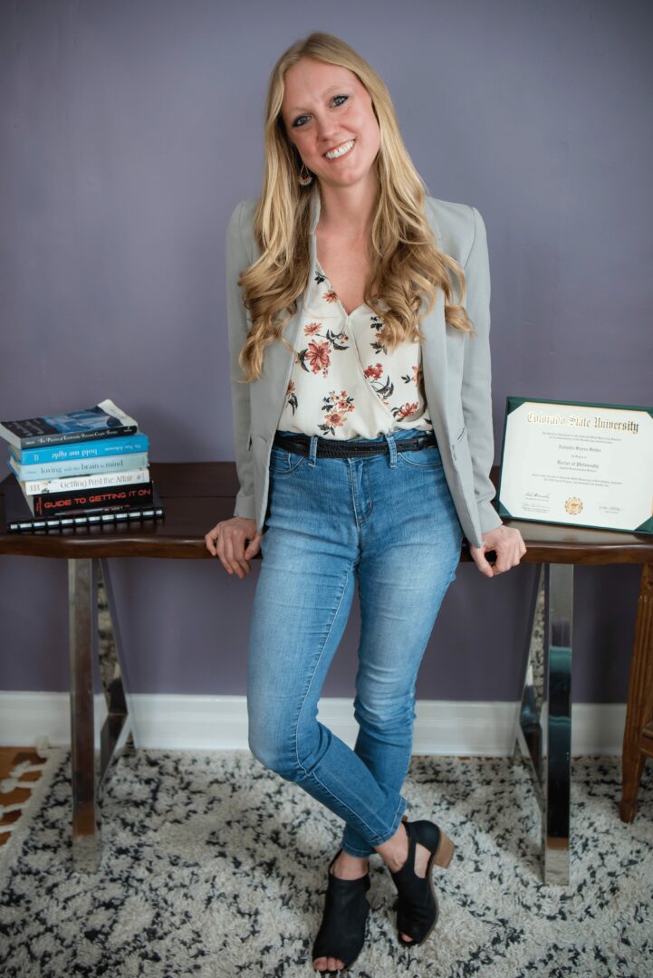 I went to graduate school here at CSU, getting my MS in Marriage and Family Therapy and my PhD in Applied Developmental Science, in the department of Human Development and Family Studies. It was there that I started to work with couples and found out just how much I loved it. My research focused on how couple communication affects stress physiology, with my dissertation work surrounding interpersonal mindfulness in couples and its relationship with physiological reactivity to marital conflict, physical health, and cellular aging.