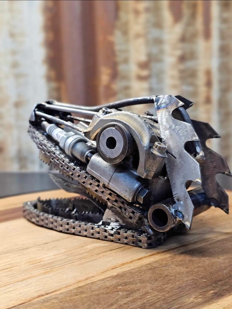 What makes my work special is the story behind each piece. I don’t start with shiny new materials; I start with whatever I can find — old tools, gears, car parts, and random scraps — and I build something completely original from them. I want people to look at my art and say, “I can’t believe that used to be a __.”