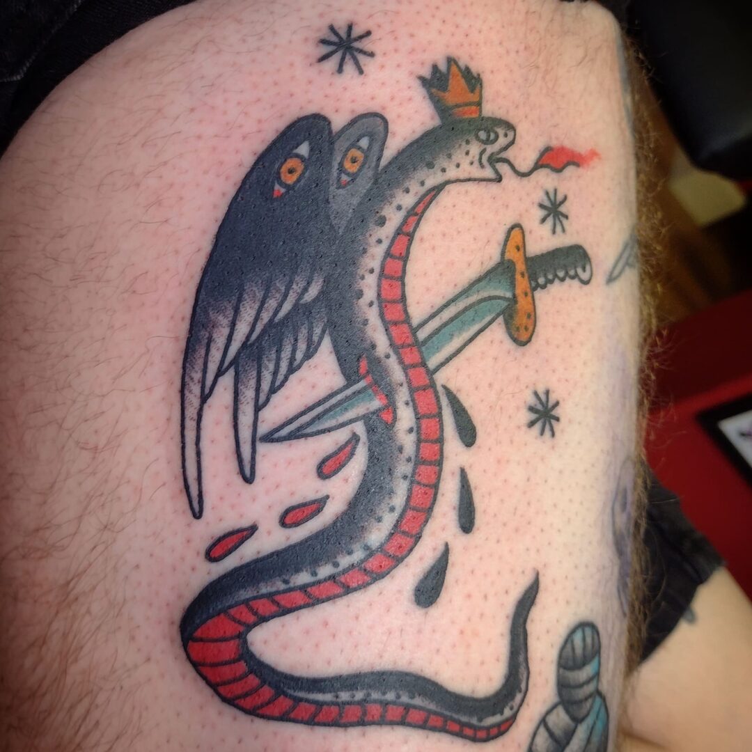 First and foremost I’m a tattooer of now 31 years and my main focus is on American traditional style tattooing however I really like to use beyond the usual vocabulary of roses, eagles, girls, etc. though I do love tattooing those as well.