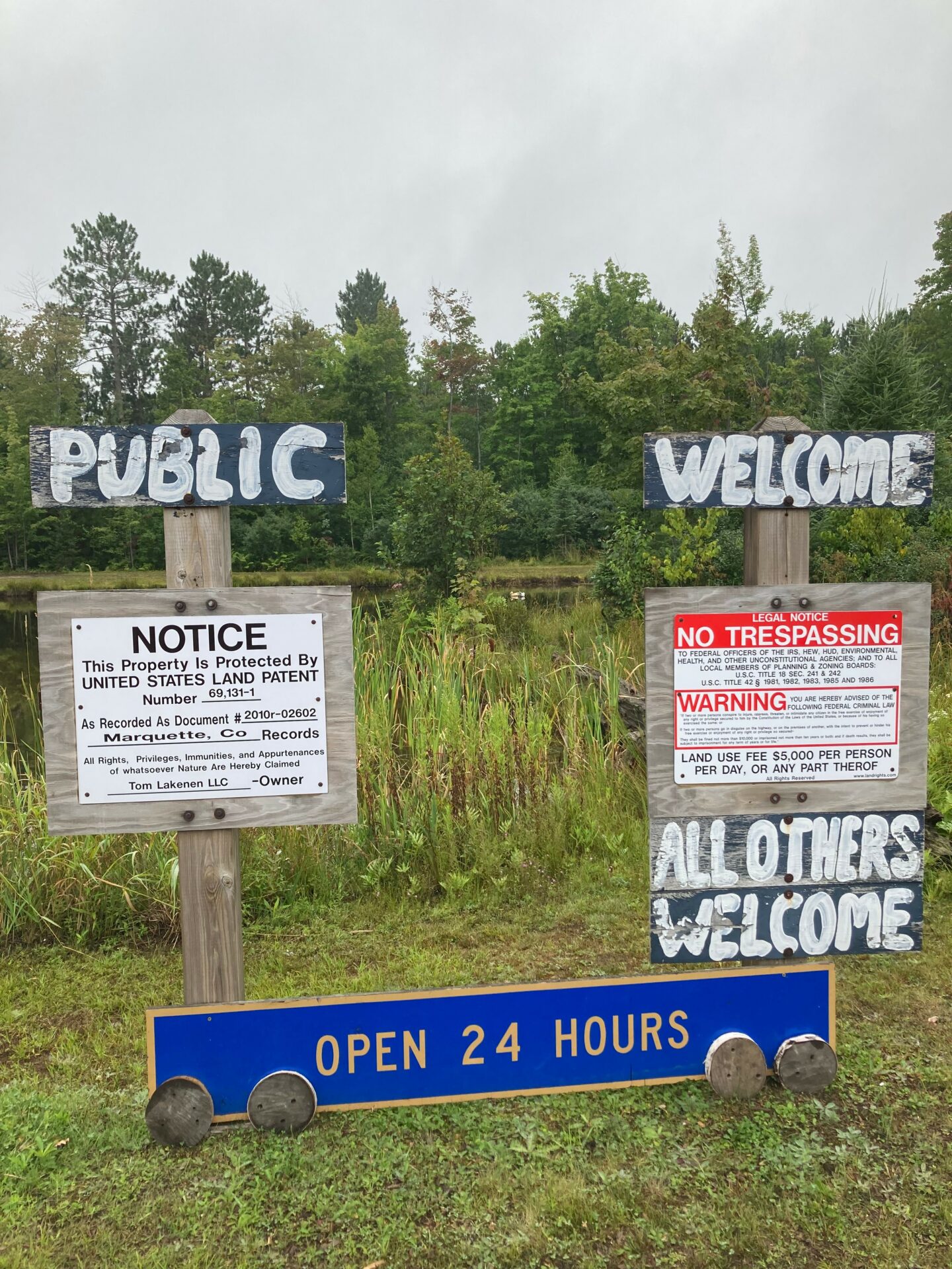 How did I beat the township man? I quit drinking in the mid nineties, needing something to do , I started building metal sculptures. After having about 15 displayed in front of our home, the township threatened me with a ticket for having a sign in a residential area! I moved everything to my back yard and kept building more sculptures, 2003 we refinanced our house for another 100 years and bought property for a sculpture park. The township zoning was good on the property for what I had planned. For some unknown reason the township threatened me with a ticket every year for 8 years. I finally met a snowmobiler who had a buddy that was a corporate lawyer and willing to help, he got for me the original deed for the property dating back to the 1800’s , sent it to me with some lawyer forms and instructions. I completed everything and brought it to the registered deeds office. It put my name on the deed dating back in the 1800’s. Now since I owned the property before the State of Michigan, Marquette County and Chocolay Township, I am exempt from state and local ordinances. I posted my property to keep the Chocolay township planning and zoning board off my property and allowing everyone else in the world to enter 24/7/365. All the bullshit stopped immediately and it’s been 12 years now with no threats from the township man!!