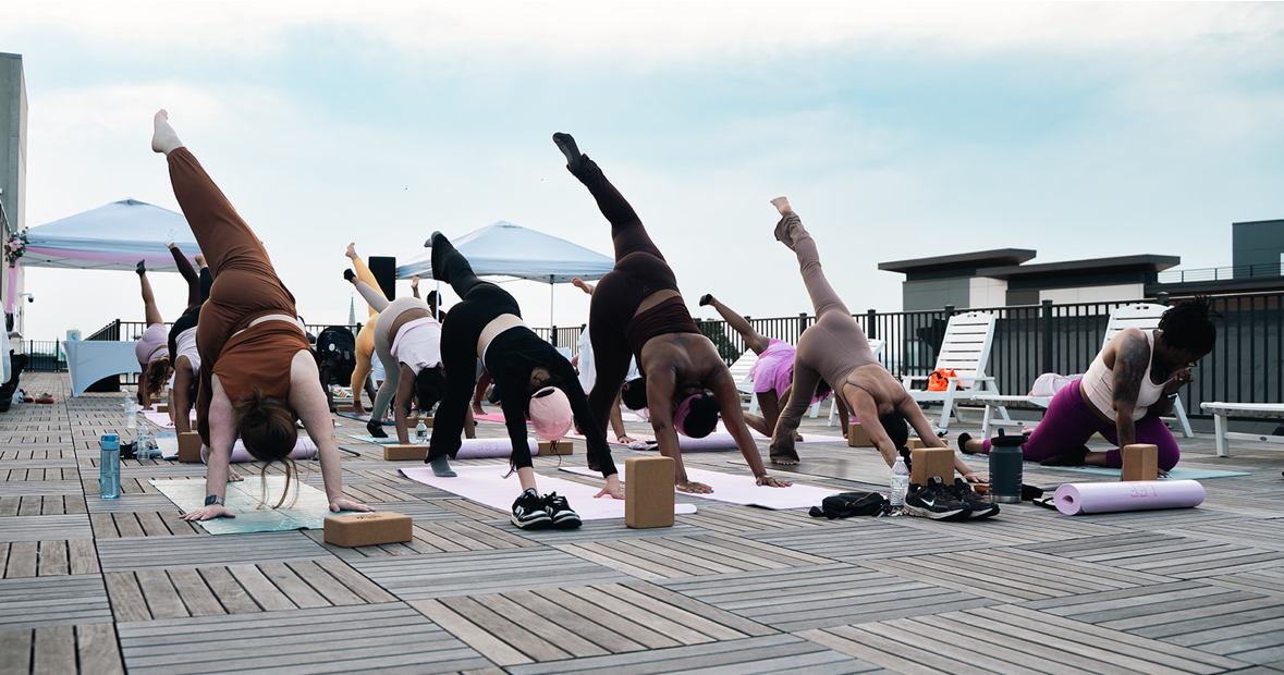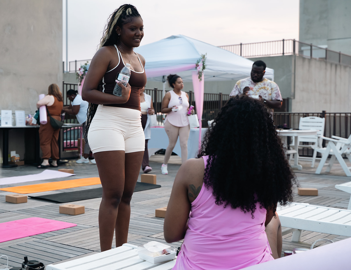 Second, through community. We create experiences that bring people together in meaningful ways. This past June we hosted a rooftop yoga session and mixer that gave people a chance to reset and connect. This fall, we’re planning a Game Night and we will continue to offer events that feel fun, supportive, and memorable.