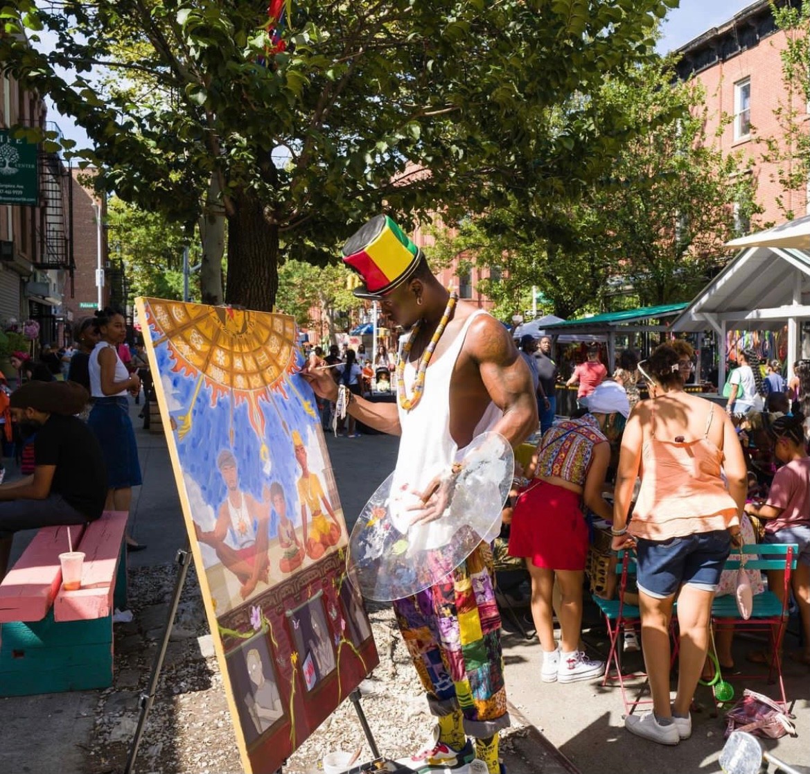 I have been an exhibiting visual artist since 2016 and a performance artist since 2022. I enjoy creating images of individuals from the African diaspora that pull in the viewer to ask questions about themselves or society as a whole. I make work that is mostly conversation starters. I think the most exciting part about what I do is the face-to-face interactions and conversations I have with people when I am presenting my work. The array of different perspectives intrigues me and half of the time individuals are pointing out aspects about the piece that I did not intend to place in it, which speaks to the subconscious nature of creating art. As of the beginning of 2024, I will be working on a new body of work called Black Concrete, which will be expressions from my observations of New York City at night, particularly what I am exposed to during my late-night travels from my home in Bed Stuy, Brooklyn, to my art studio in Times Square, Manhattan.
