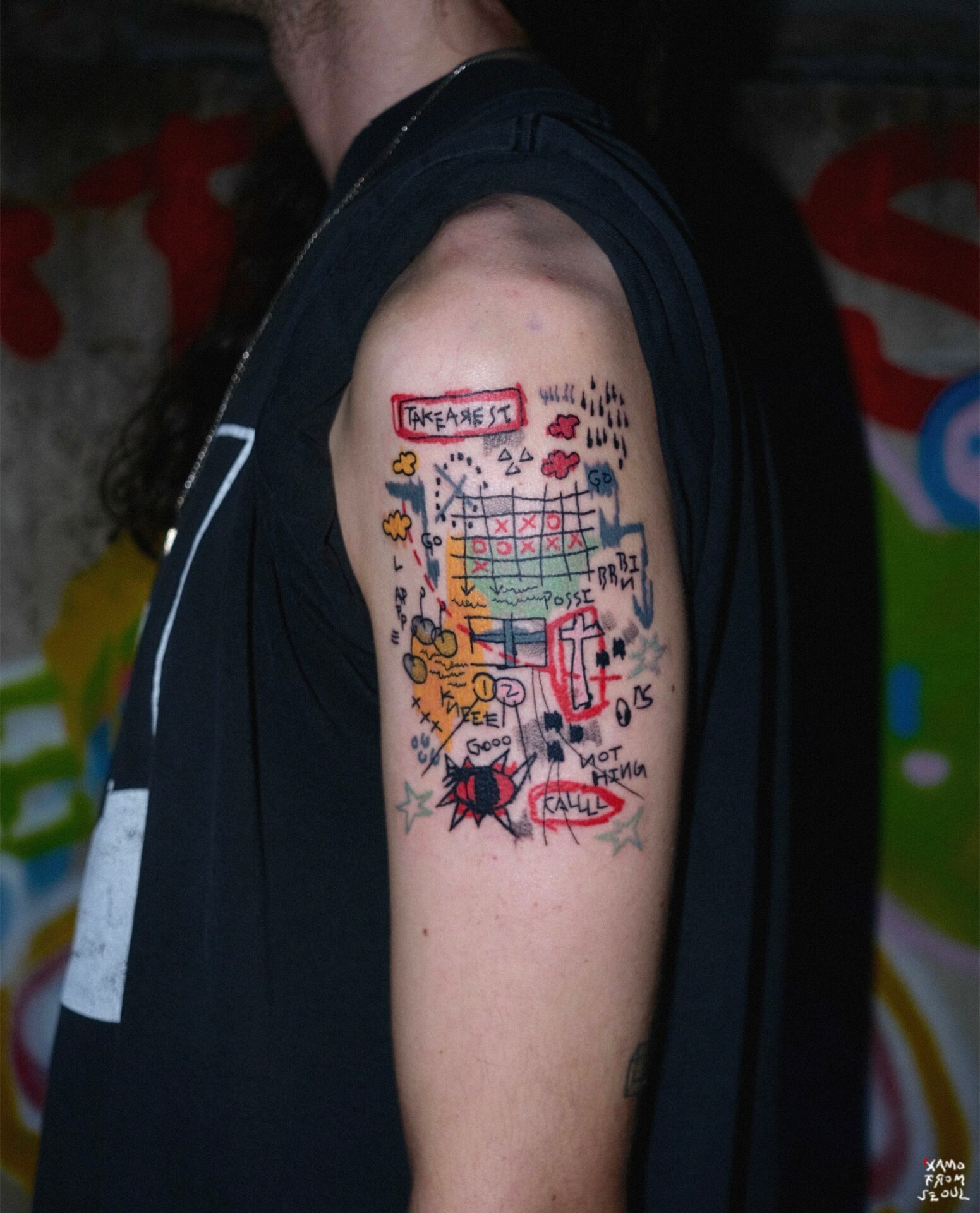 I wasn’t originally a person who draw much, but I started to draw after getting interested in tattoos, So my drawings are quite different from others who studied art majors. I never learned how to draw, so I don’t really have a rule when I draw. So there’s a lot of graffiti and abstract elements in it.