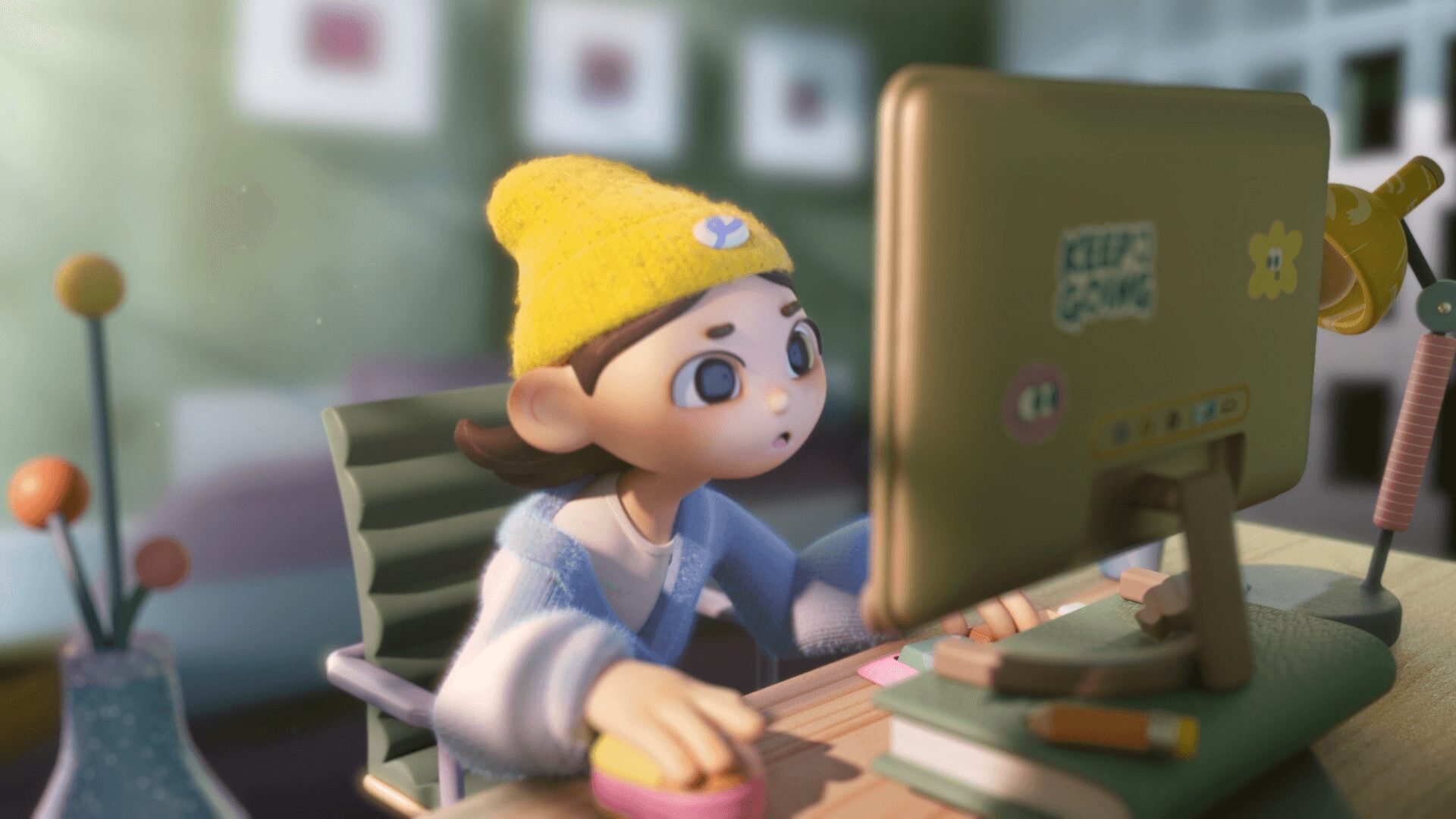 I am good at 2D and 3D motion graphics to create smooth animations, and often bring in illustration techniques to make the pictures more vivid. I hope to bring a rich and novel visual experience to the audience through my grasp and aesthetic of layout, design, composition, and color. Through the cute little elements and details, flowing lines, and natural style I create, people can feel a sense of breathing in their busy lives. I hope everyone can step into my colorful art world, feel my emotions, and explore their own heart.