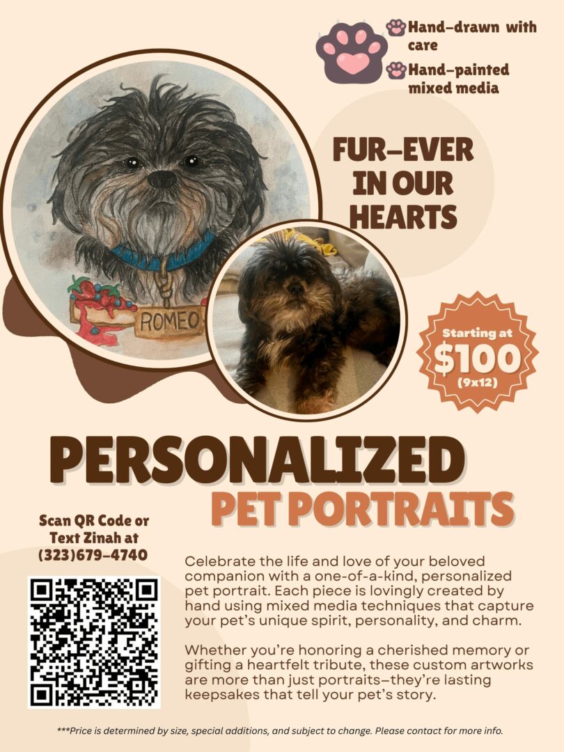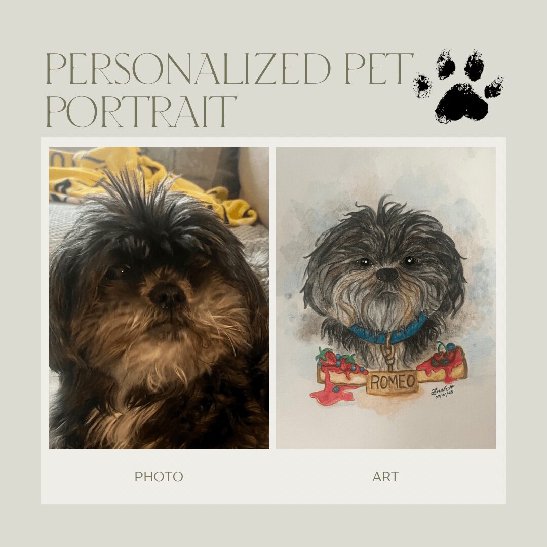 I’m now offering hand-painted, mixed media 9×12 pet portraits beginning at $100. My goal is to complete 1–2 portraits a week while balancing my Life Coaching, Authoring, and Caregiving position. Every art commission helps keep me going—literally (food, gas, and a little joy)!