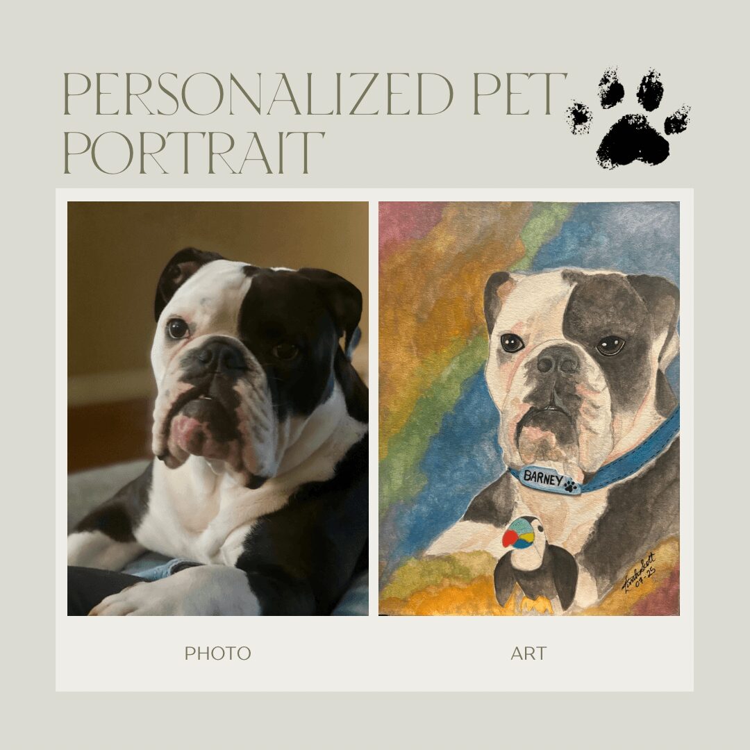I’m a woman of many hats, but right now, my heart is in pet portraiture. I paint beloved pets—whether as memorial pieces or joyful tributes to the furry friends we share our lives with. There’s something deeply special about capturing a pet’s spirit on canvas. If I can turn a photo into a painting that brings someone comfort or makes them smile, then I’ve added a little more warmth to the world—and that’s everything to me.