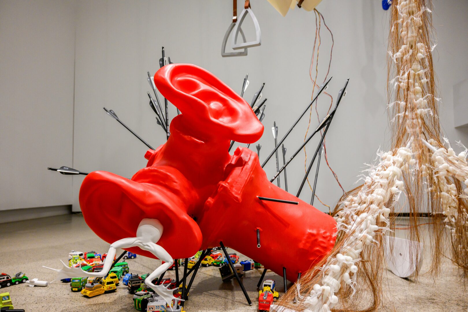 I think what I am doing is fun, and it feels like therapy a lot because I get to take control of things I can’t control. It does feel empowering, but it would be rather frivolous if done without hitting a note somewhere; that is, I try to reveal these mystical objects. For example, in my vending machine sculptures, I play pranks to my audiences. When they activate these vending machines they receive baby devices of destruction, like baby missiles and horse embryos. Here I tried to put the everyday experience of transaction here and think about how transaction simulates our modern experience, including violence and war. Yet these baby devices were eatable made out of sugars. So I felt like I am inviting people to use their mouths to conquer conquering objects.