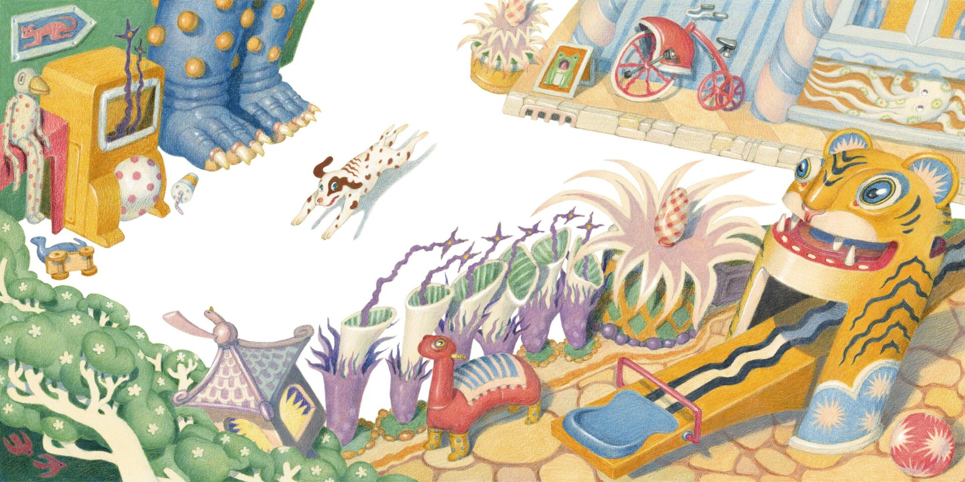 Looking back at my creative process, I’ve realized that developing hobbies has always been the best way to keep myself passionate—not only about waking up the next morning, but also about providing inspiration for my career as an illustrator. A perfect example is my little hobby of collecting toys. I love hunting down old toys in markets around the world and searching for toy magazines from the ’90s. This small hobby has become one of my biggest sources of inspiration for creating children’s books, and it always keeps me excited while I’m drawing.