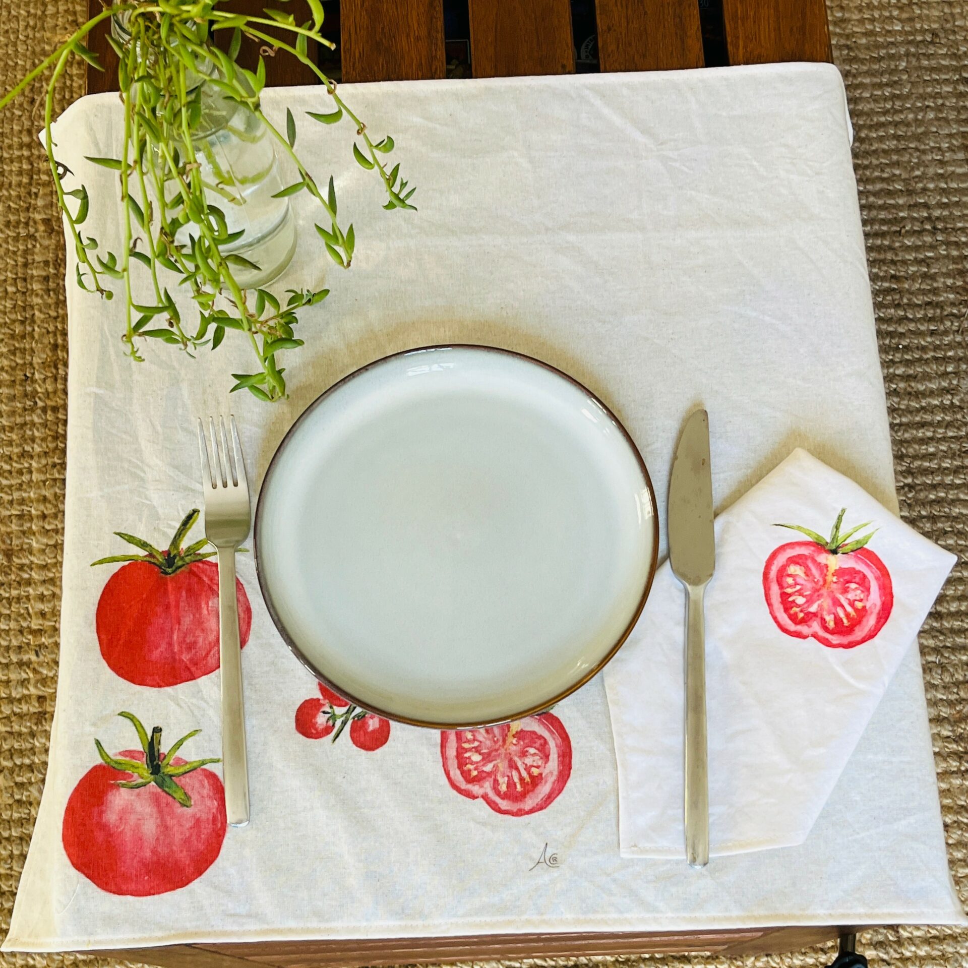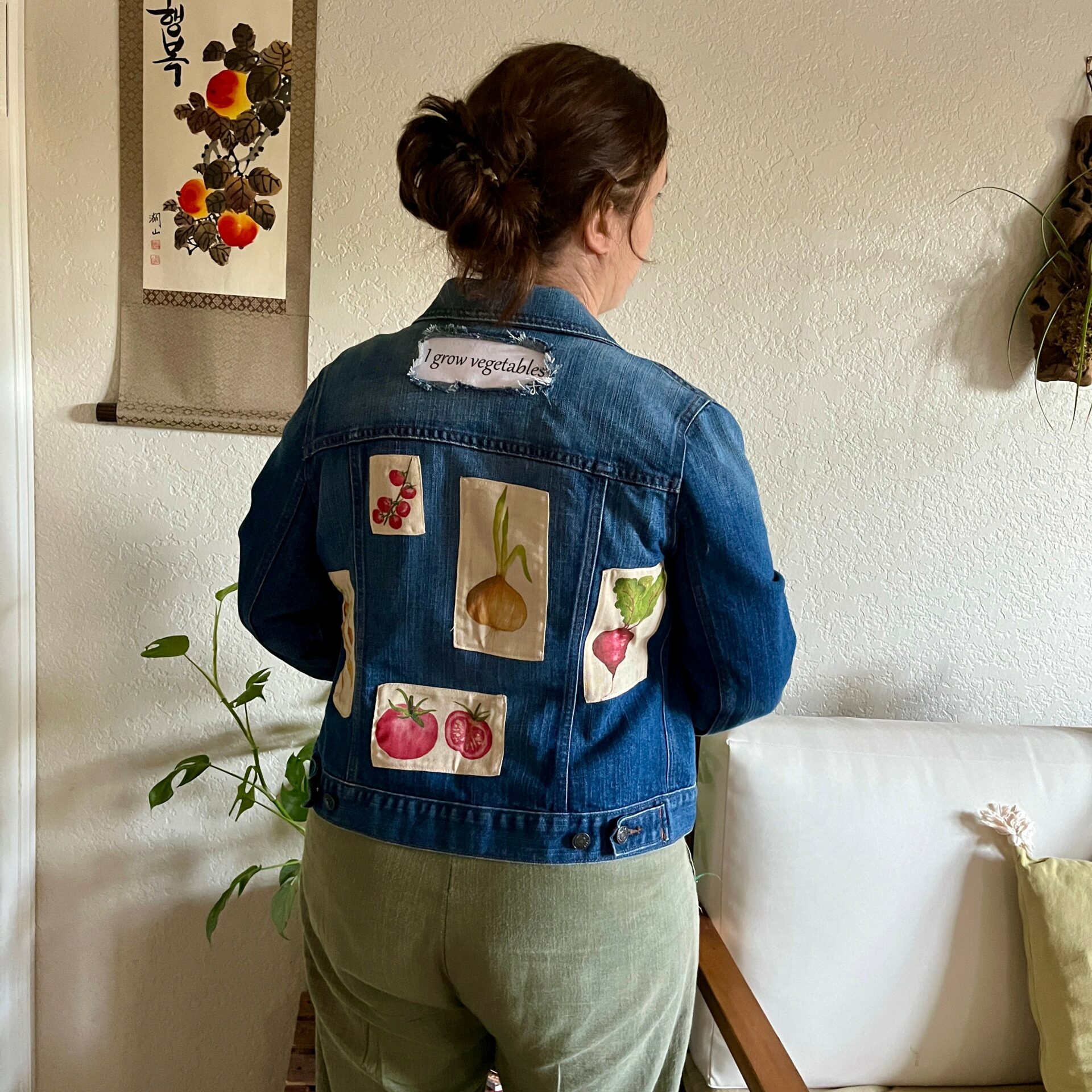So if I have to summarize what we do in one sentence, we transform preexisting material into functional, stylish pieces, blending sewing with watercolor art.