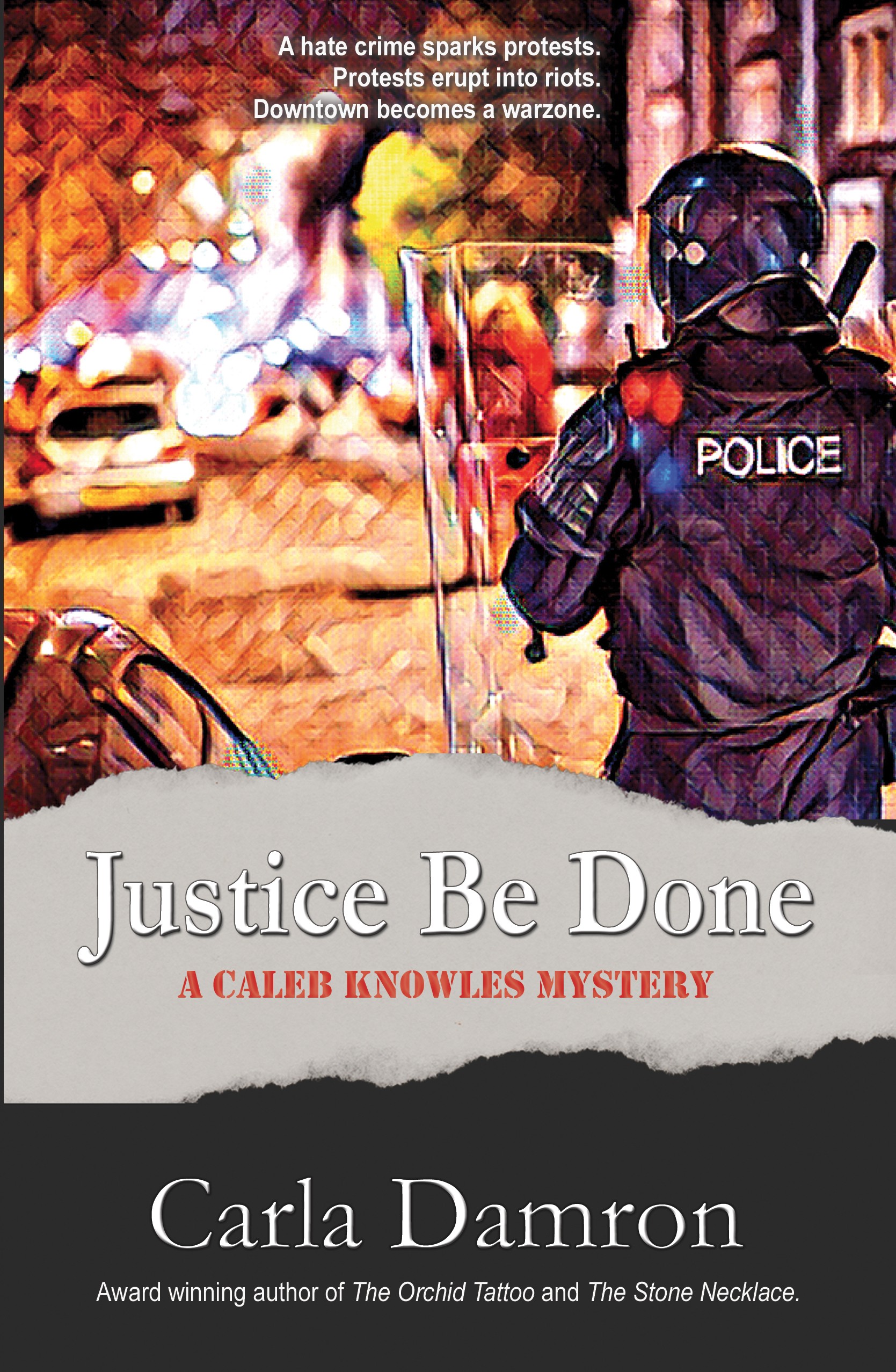 My latest novel, Justice Be Done, is a mystery that tackles the complex subject of unresolved racial tensions. A hate crime spawns race riots, both sides feeling justified in their stance, Against this volatile backdrop, a police officer is murdered–and the violence escalates. The protagonist, social worker Caleb Knowles, desperate to solve the murder and calm the storm, realizes that someone is manipulating the conflict for his own personal gain. This book is complex crime fiction that asks the reader to consider why we haven’t resolved racial tensions that are centuries old.