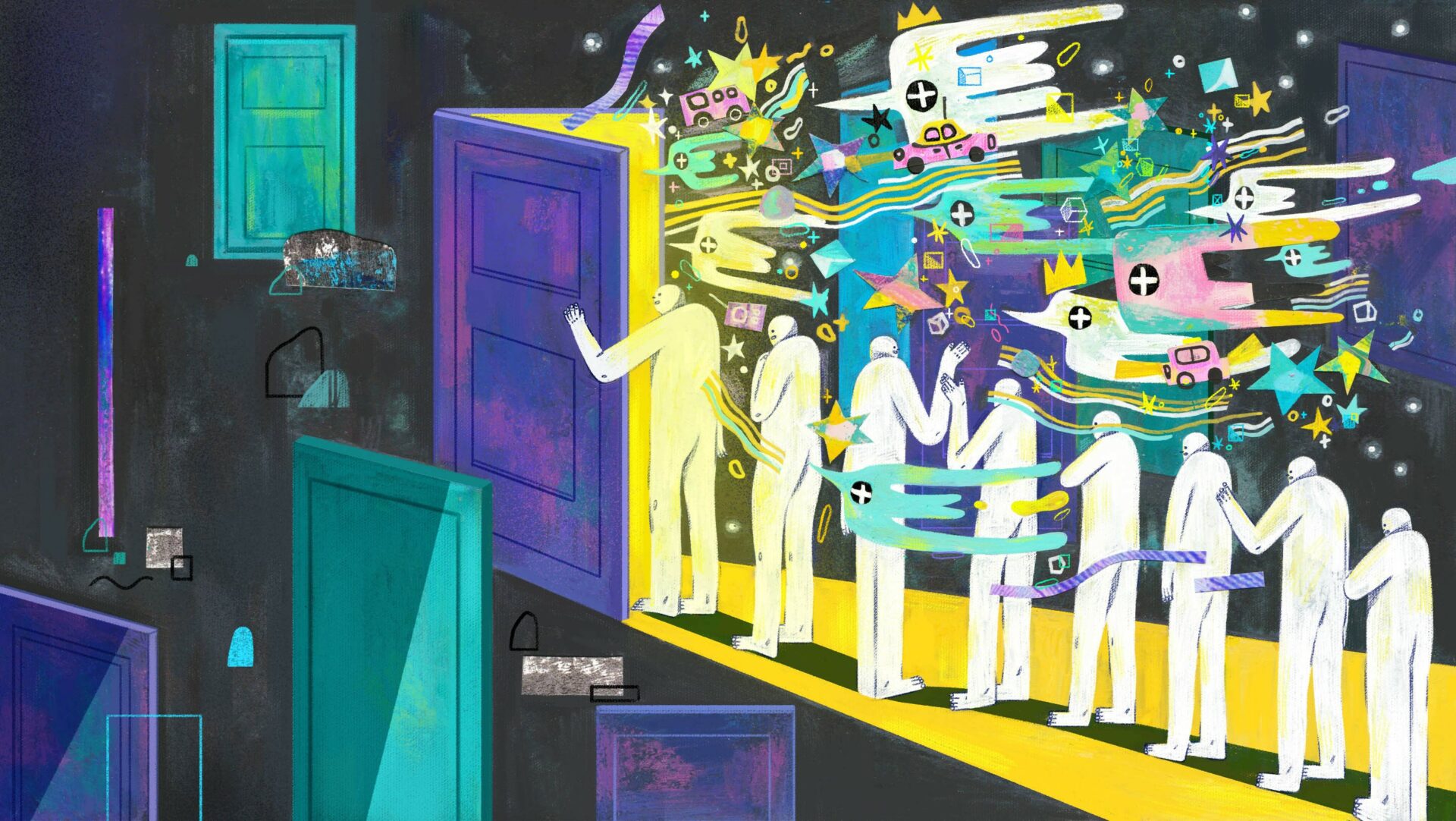 My name is Changyu Zou, and I am a freelance illustrator based in Savannah, Georgia. Most of my creative inspiration comes from poetry and I like to convert my feelings about words into images. Although these words are sometimes very abstract and difficult to understand, they can give me unlimited imagination. I believe that visual language and text have been influencing and blending with each other, so I try to use visual art to express and describe words. I love surrealist paintings; I am addicted to extraordinary imagination and great compositions. Hieronymus Boschd’s paintings, for example, are highly original, imaginative, and make extensive use of various symbols and signs. I think they inspire me to think about the composition, imagination, and graphic elements of illustration. Of course, my style has changed a lot from the very beginning. I think experimenting with a variety of drawing tools can help find the right style of illustration for you. Once I tried some printing tools and collages, I fell in love with these ways, so now I love to draw by hand and create illustrations with gouache, crayon, and collage. And I try to keep the traces and texture of these hand-drawings in my digital drawings.