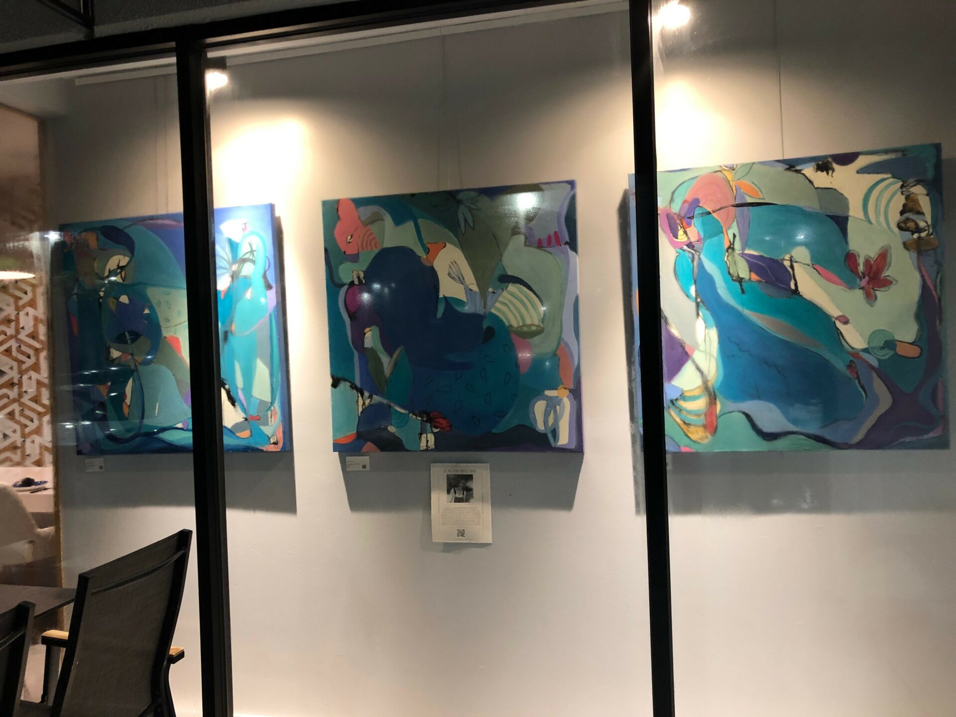 I am an artist whose recent work has been largely focused on biomorphic abstraction which is abstraction that “incorporates a visual language based on biomorphic shapes—bulbous, lush, sumptuous looking forms—that are neither representative nor geometric.” These shapes began to intrigue me during the pandemic when I started a new series with artwork and titles that were meant to be whimsical. I felt that not only I but others needed some comic relief during this rather grim and isolating timeframe. After recently attending a national artist retreat I started working on an offshoot of the biomorphic abstracts using the same underlying technique but creating more recognizable abstracted figures than the original biomorphic artwork. My work differs from many of the artists you see today who are focused primarily on abstract expressionism which fits more neatly in the nonobjective realm. As an artist I strive to create artwork that is innovative and successfully conveys how I interpret the world around me visually and emotionally. My hope is that others continue to appreciate my art and my vision as it evolves over time.