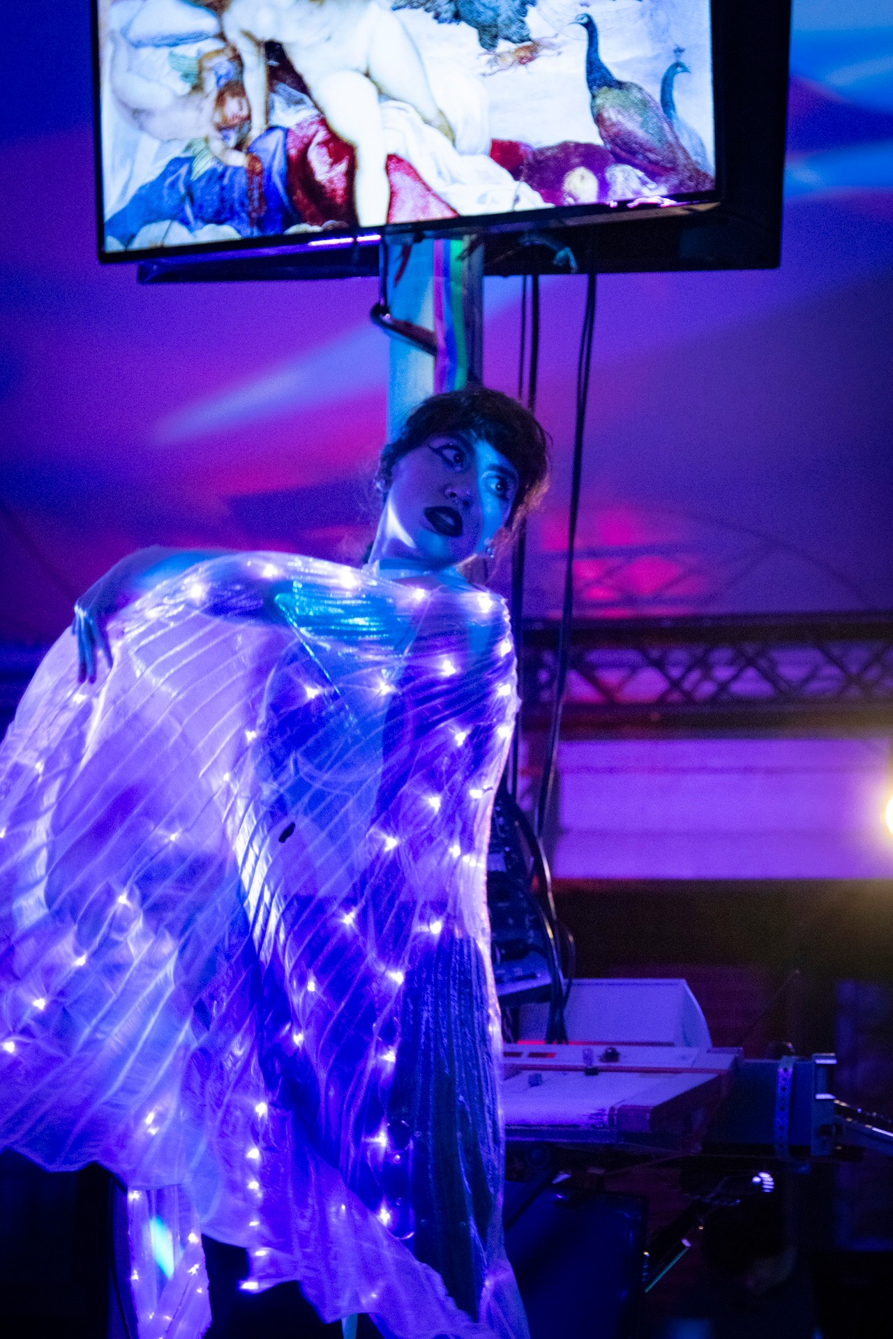 Poster art credit: Tabitha Bradway Photo of person in light up cape credit: Brad Costa Photo of myself and woman in red (my sister, Sarah Pothier Bass) credit: Kellie Rock