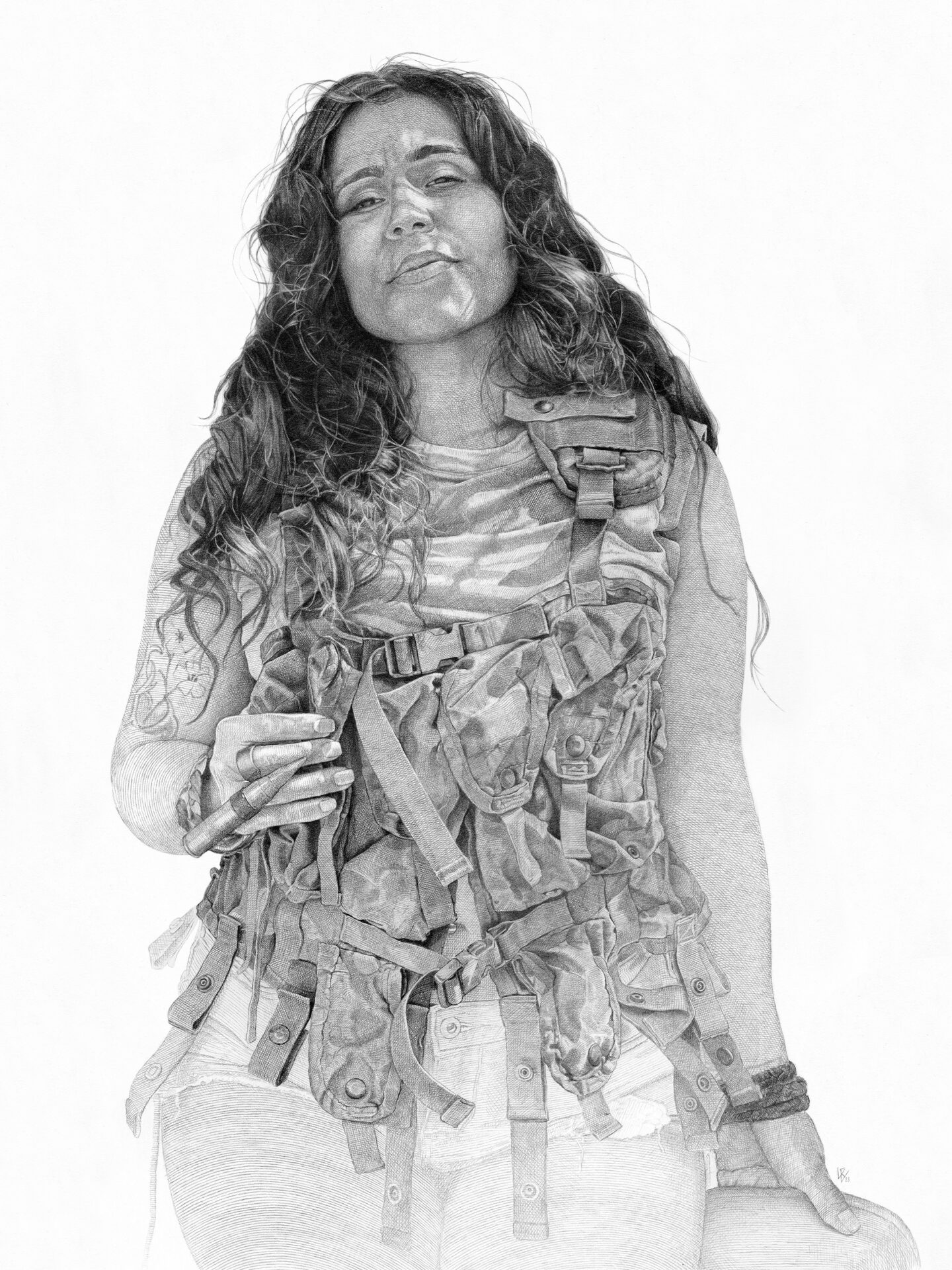 I started a new series at this time. I was going through so much and needed to surround myself with strong women. I decided I’d build this sort of army of women. I began reaching out to a few older friends that I hadn’t seen since high school and I started meeting new people that were referred to me. I asked them to model for a series titled “The Women’s Militia” and began dressing them as soldiers, photographing them in these different abandoned landscapes filled with colorful graffiti. It was so beautiful to see their expressions change when dressed as these modern day warriors. They became so empowered. I began using those images as reference for paintings, drawings and most recently sculpture. The series was to represent the strength of women despite all the battles we fight, and to show how much stronger we are when we come together.