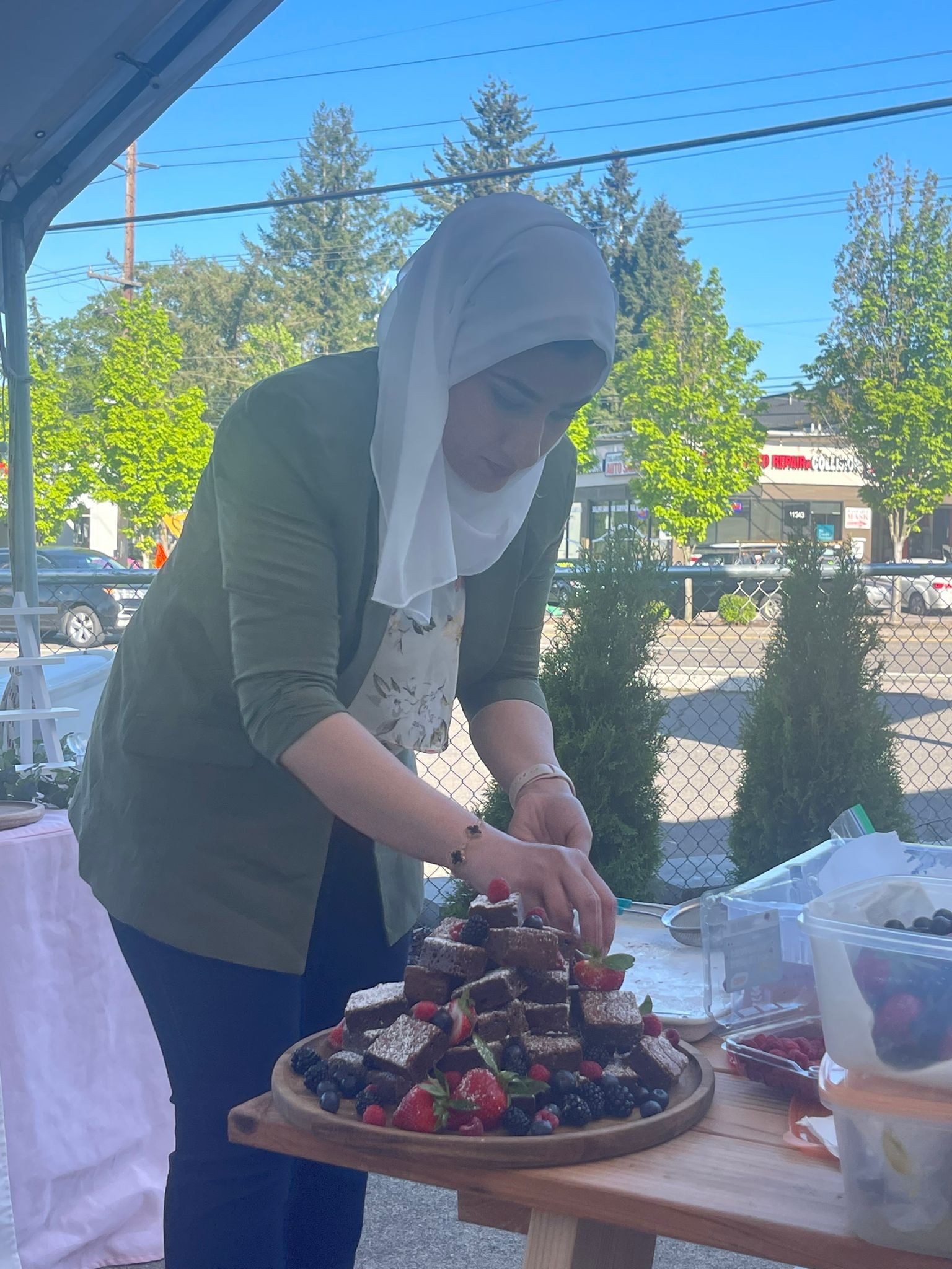 For a long time, I have been in love with the kitchen, and I love to cook, bake, and enjoy my time in my kitchen. Since I was nine years old, I have been watching my mother how to cook and how to put her ingredients. When I grew up and after I got married, I had a dream to develop myself in the field of food and baking, and I enjoyed trying recipes from other cuisines, such as American, European, and Arab. Then, when we came to America, I still had my dream of opening my own restaurant or sweet shop. I searched a lot here for sweets, but I did not like them. I then decided to develop myself further, challenged myself, developed myself, and worked a lot on my recipes. Until the day came when I spoke to my husband that I wanted to work in the field of sweets and deliver the real taste to the customer with high quality, because I did not like the quality that I tried in the sweet shops. The first step to my success was that I received an email from the manager of Portland Saturday Market. When I met with her and the employees and saw how much they liked my products, that in itself was a challenge for me. She said that she had been searching for products as good as mine for a long time, and this increased my love for baking. When I started working in the market every Saturday and seeing my customers’ expressions and their admiration for my products made me forget about being tired and staying up late for my work. I promised myself that I would prepare everything myself, with high quality, and that my baked goods would always be fresh for them. I also prepared recipes of my own efforts, and they were a distinctive mark for me. I had clients who came every Saturday just to buy my products, and this increased my love for my work.