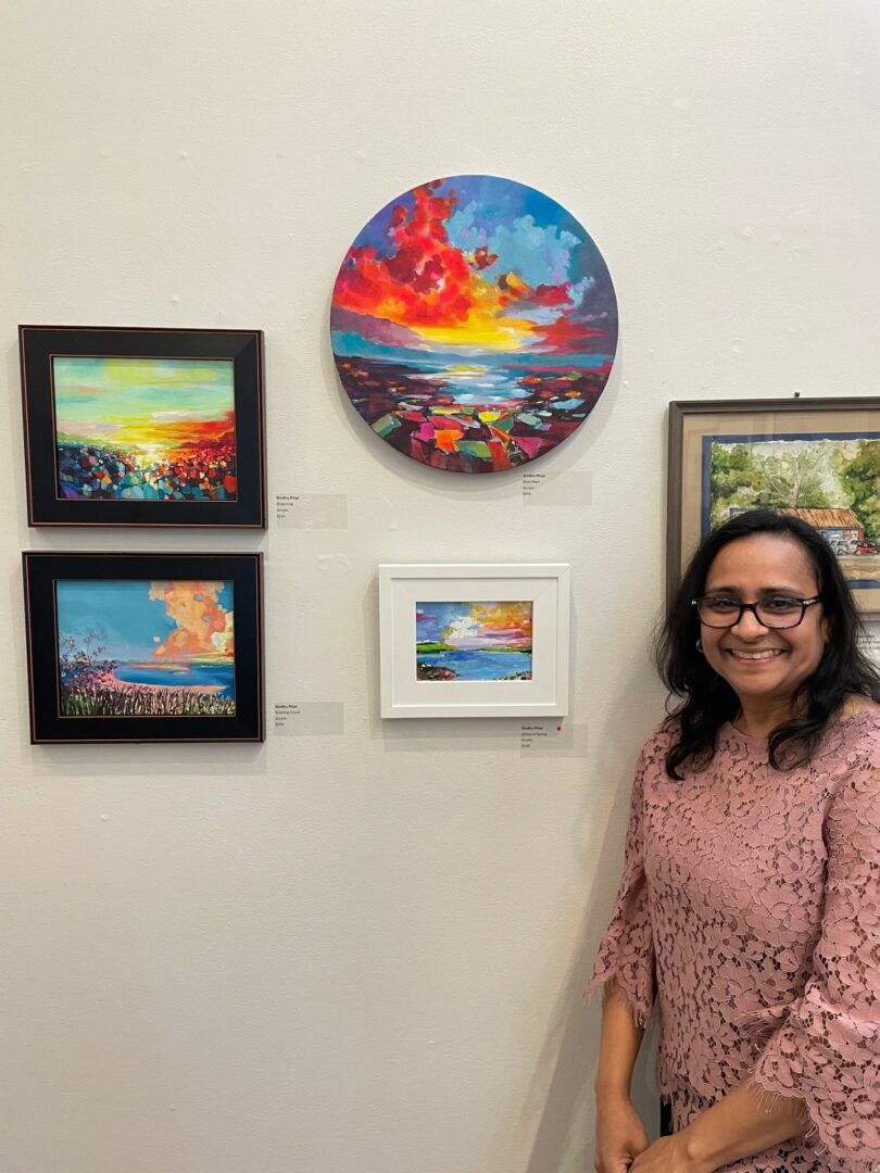 It is a very important question as I always try to figure out how I became a painter. As a child growing up in Southern India, my parents put me in classical dance lessons since I could remember. I loved to dance and the rhythms of the classical music that accompanied the dance always stays with me. I watched my father meticulously carving birds from wood, sculpt, paint and do many forms of art during his weekends. My mother was the best critique of his works. I guess that is how I learned to love art. After raising kids, I found time to paint, and it became more than a hobby for me.
