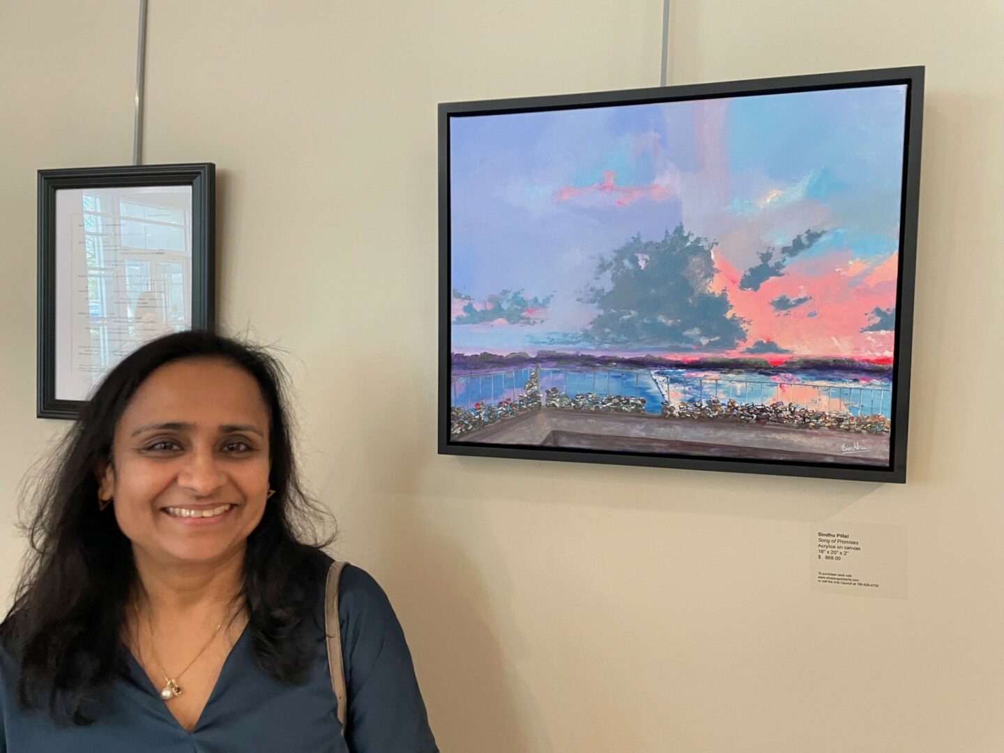 I am a landscape artist from Augusta, Georgia. I started my career in the art world painting local landscapes. I painted everything that caught my eye from the morning sky, the river, the bridge, and love locks which fascinate me every single day. I paint the market, fairs, plants and trees seen around my city. I’ve shown my works in galleries and art fairs as ColoredInCanvas. Over time, I have incorporated many new ideas and styles into the same landscapes. I want to remember the places and my feelings by painting them with the same sensations I felt in the moment. To me, it became a process of collecting memories. For example, I remember vividly the day we experienced the total solar eclipse on April 8th, 2024. I was taking a walk and saw the sky partially covered by clouds all the way and the rest of the sky in my viewpoint as clear as pale blue paper. I haven’t seen clouds in the sky like that again. When Hurricane Helene hit every inch of space around me, and brought down droves of trees, I felt like there’s no way I could paint these landscapes again as they didn’t exist. Tree debris was blocking all access to the river and the places I usually visit. I found shimmers of hope and joy when I saw sights of birds cuddling in the shattered landscapes and sun shining through the debris. I was inspired to make a new collection of paintings called “Overtones”. Now I see a new landscape emerging and am working on painting this magical recovery of nature on a larger scale.