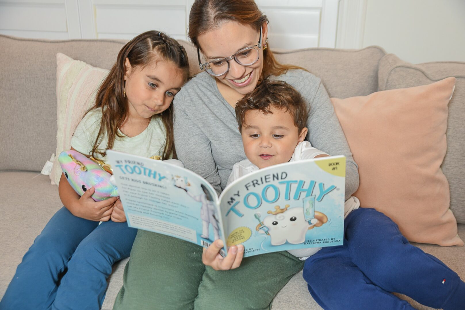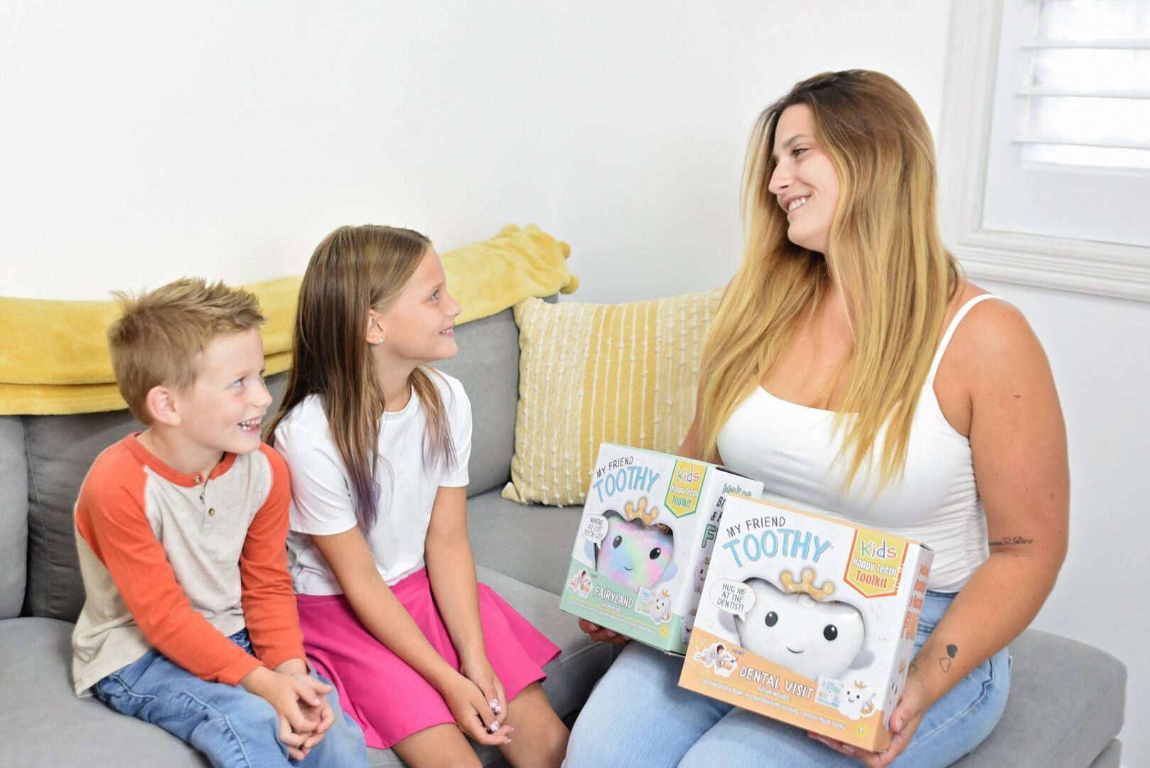What started in the corner of our basement has grown into a children’s dental care brand loved by families everywhere, featuring Kids Happy Teeth Toolkits, educational fun storybooks, plush Toothy, and accountability mirror clings that make dental care a joyful part of family life. Today, we’re proud to be inspiring healthy habits around the world and creating happy, stress-free smiles one family at a time.