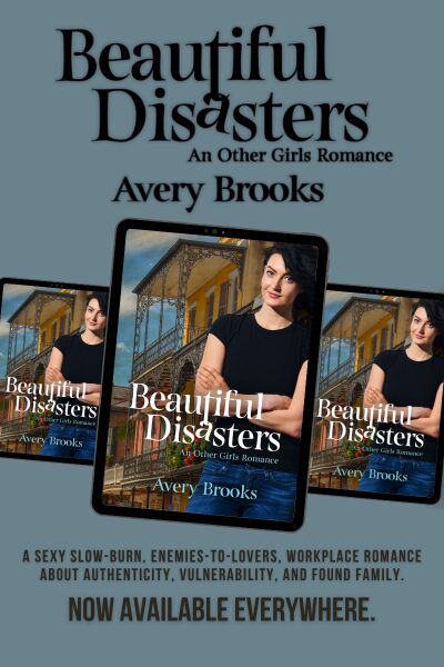 My name is Avery Brooks and I’m an author of sapphic fiction. My books are sapphic contemporary romances set in New Orleans with a mixture of heart, humor, and heat. My debut novel, Other Girls, was a finalist for the Golden Crown Literary Society’s Goldie Award in Contemporary Romance. It centers around a single mom who lost her wife three years ago and whose high school bully has just moved back to town and joined her recreational softball team. In April, I continued the series with my newest release, Beautiful Disasters, which centers around two of the supporting characters from Other Girls, a player and a hopeless romantic, in a slow-burn workplace romance. The audiobook of Beautiful Disasters will be out in February 2026 and is narrated by the amazing Quinn Riley, so I’m very excited about that. It will be my first audiobook, so I’m happy to be able to offer that format to my readers who prefer audiobooks.